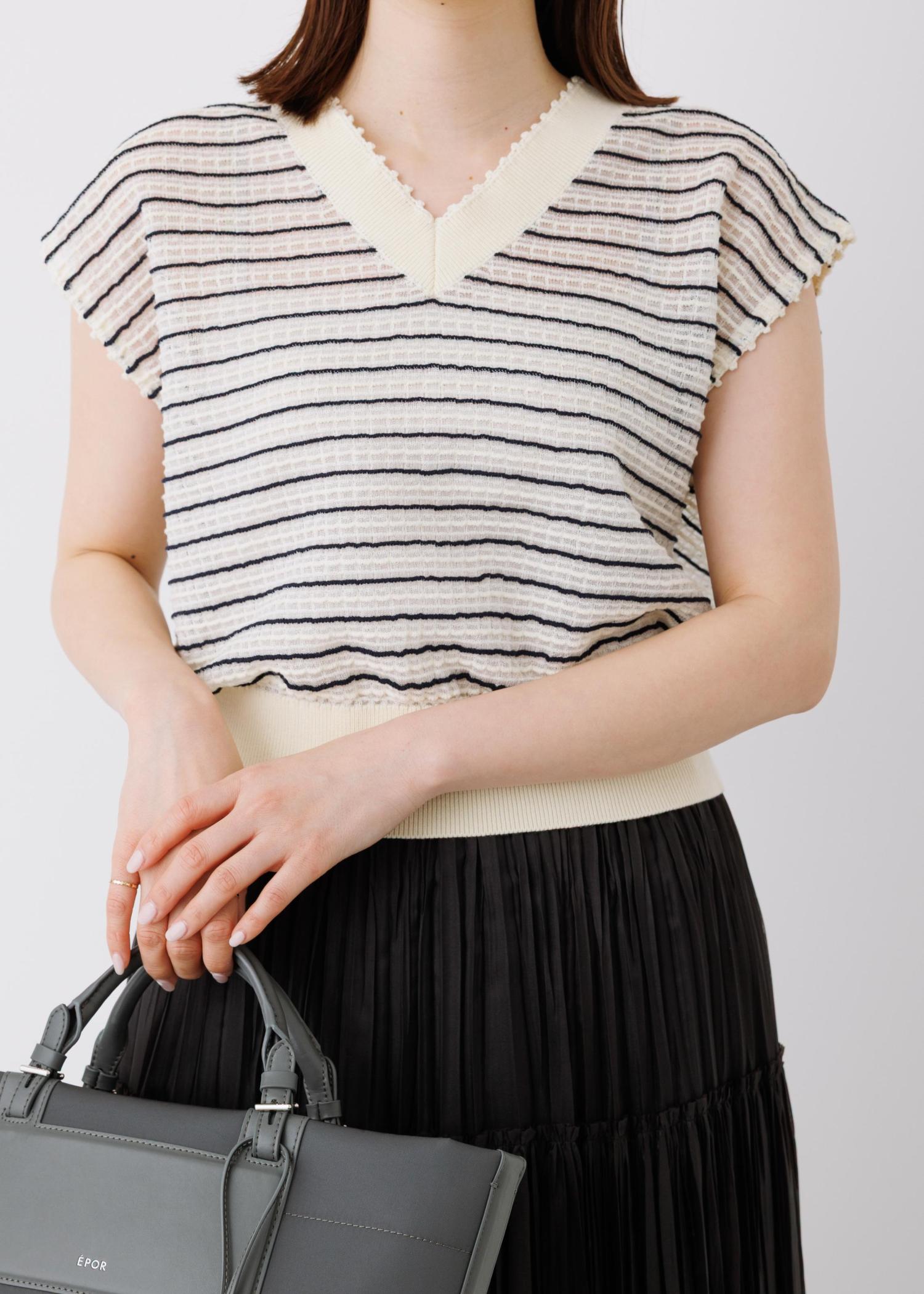 予約ROPÉピンタックサマーノースリーブニット/イージーケアホワイト系 / F¥16,500レビュー透け感のあるピンタック編みで