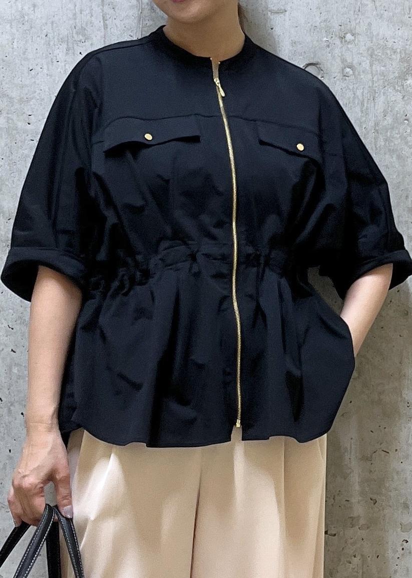 ウエストにドロストが付いていて、メリハリのあるペプラムシルエットでも使えるので、低身長の方でもキレイに着こなせます。 -