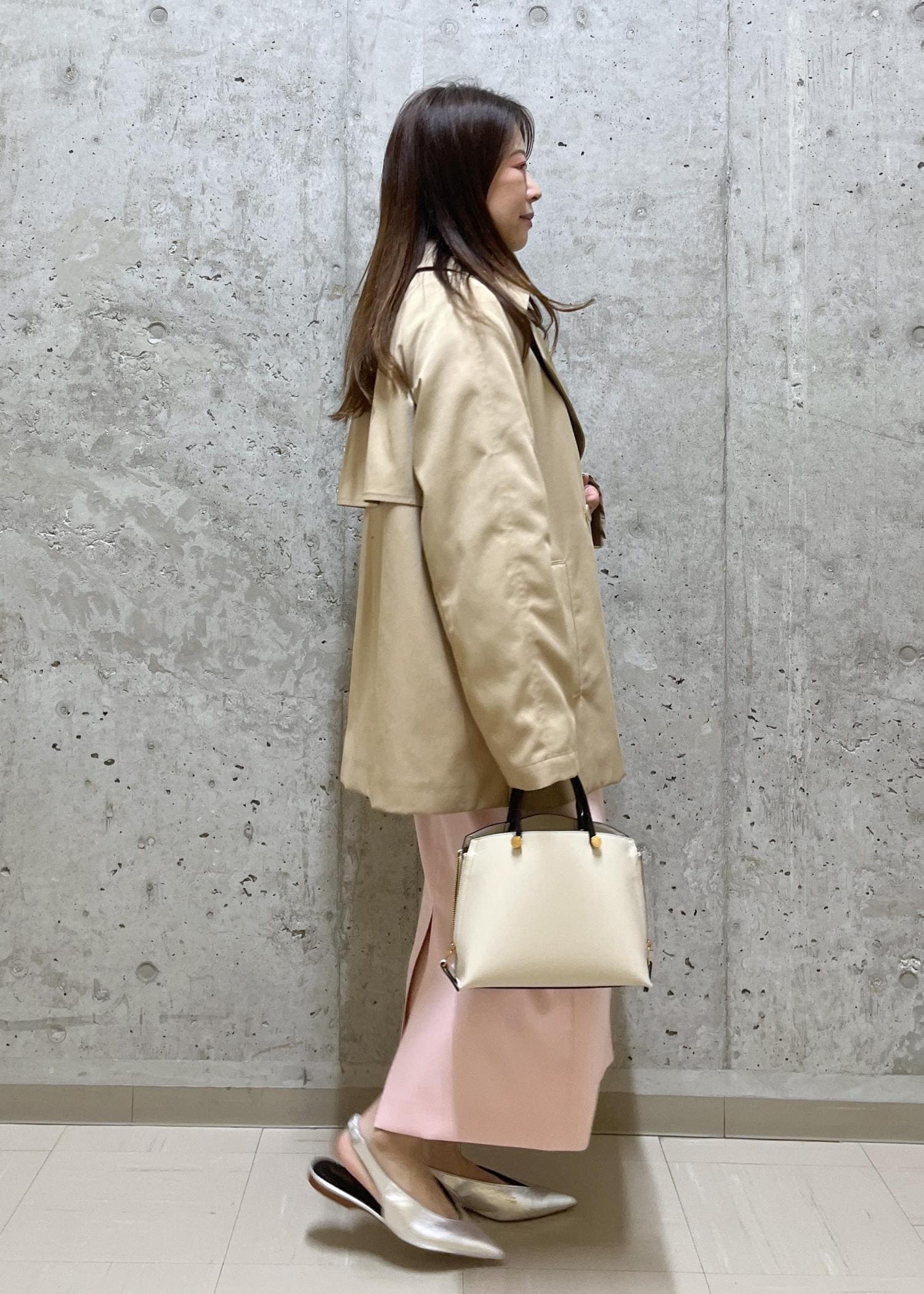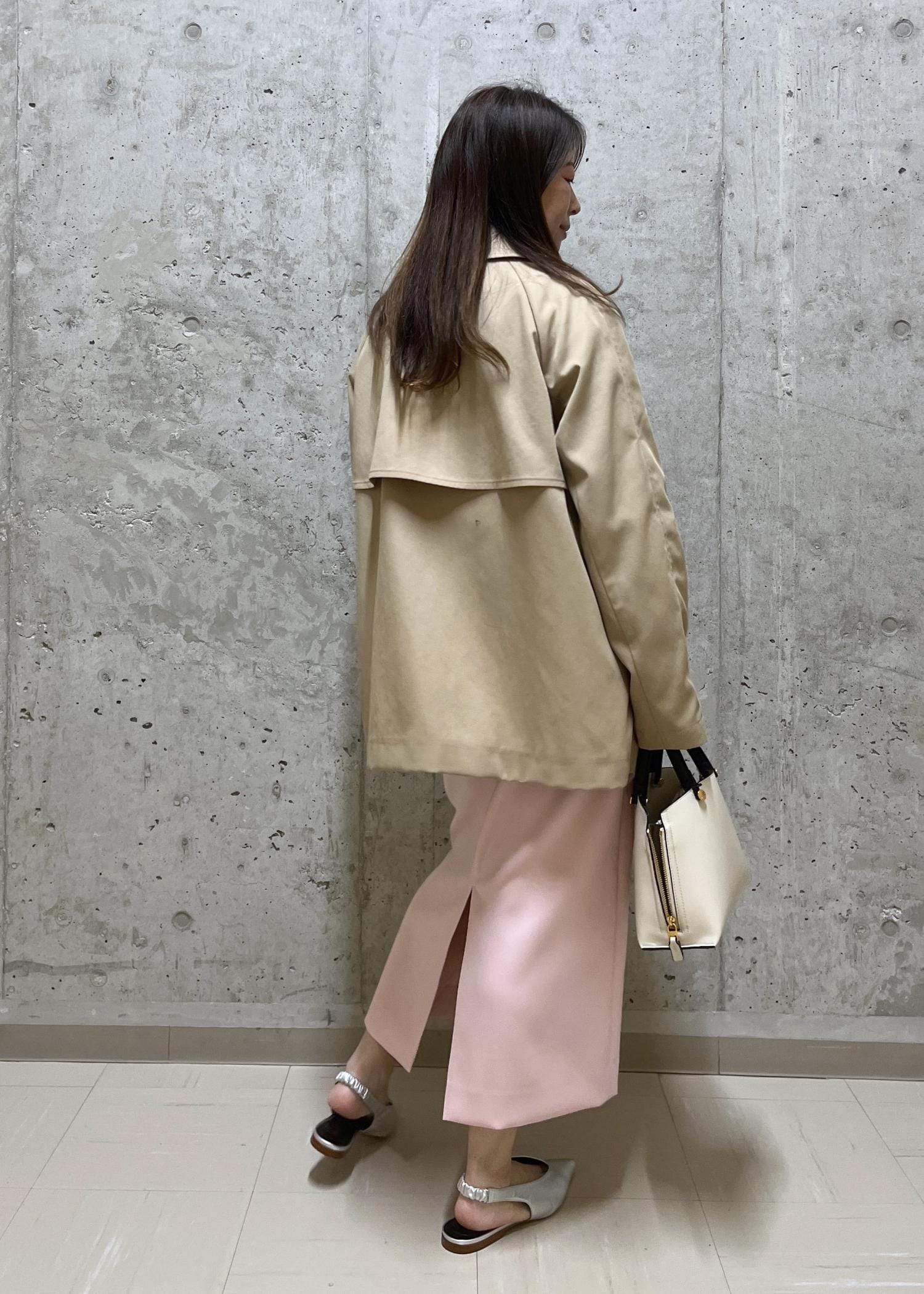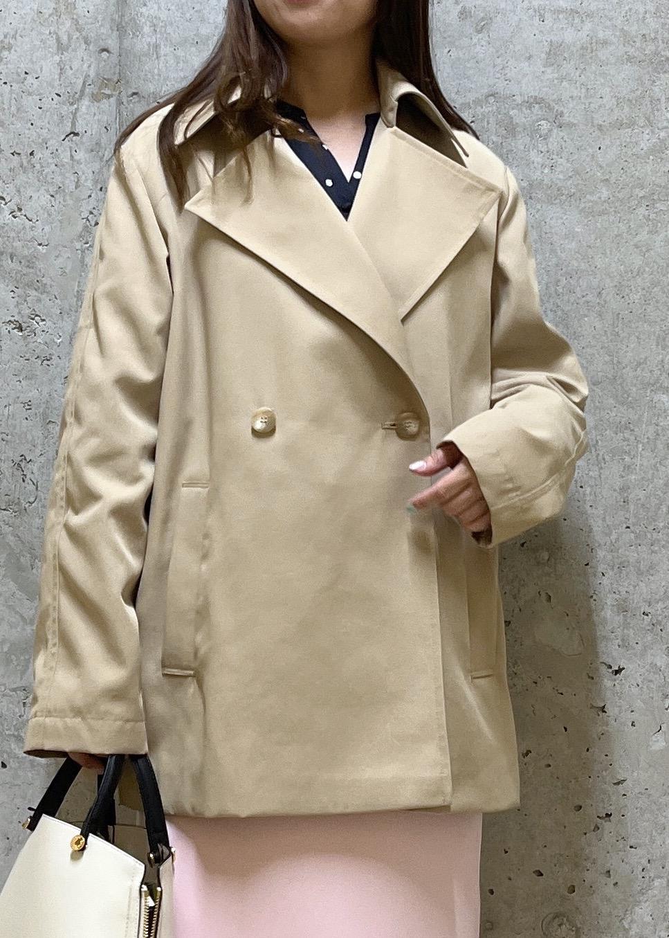 ショート丈のトレンチで軽さを出しました。