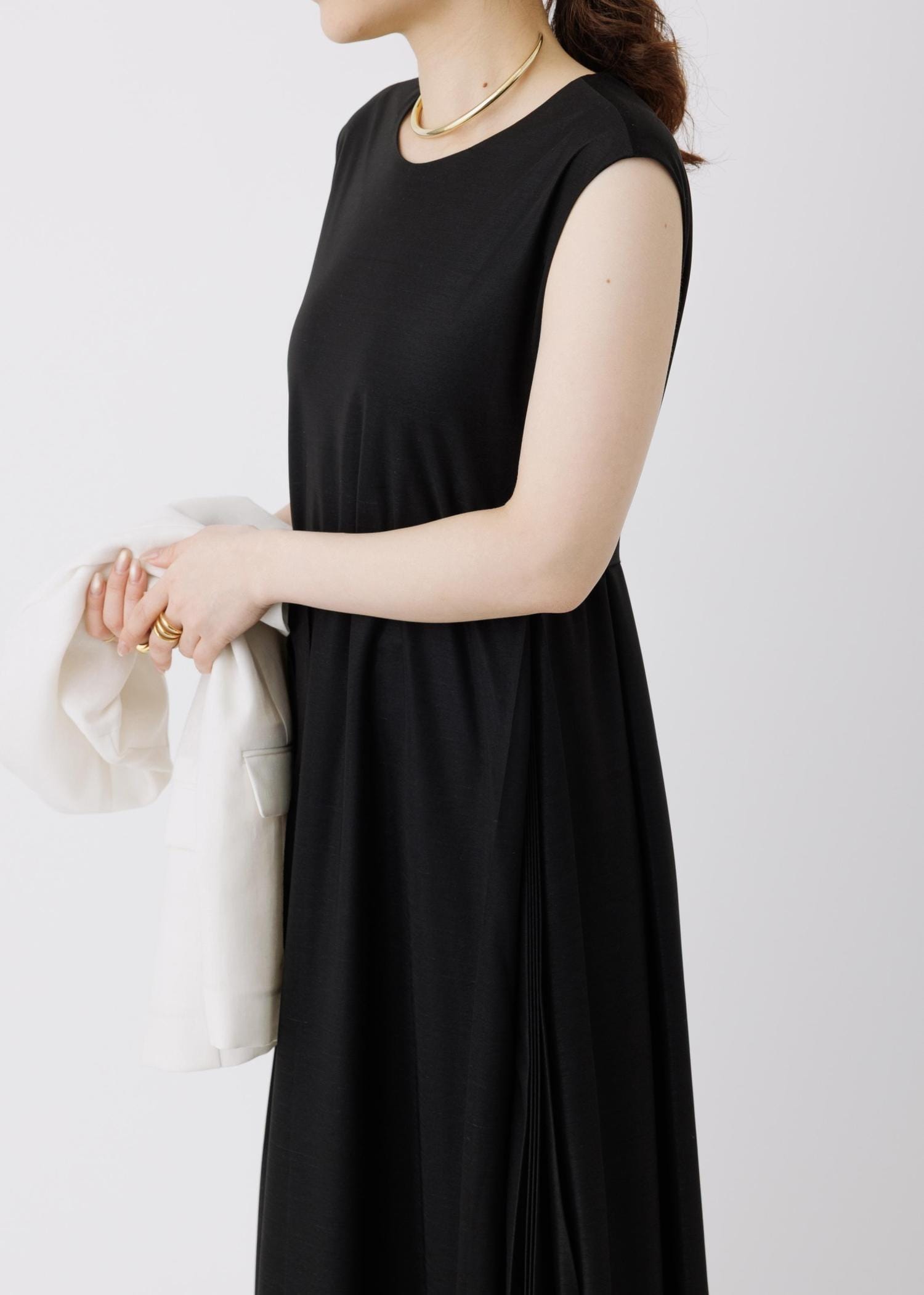 Aラインシルエットで落ち感のある生地は体型を選ばず着用でき、すっきり見えも叶います◎