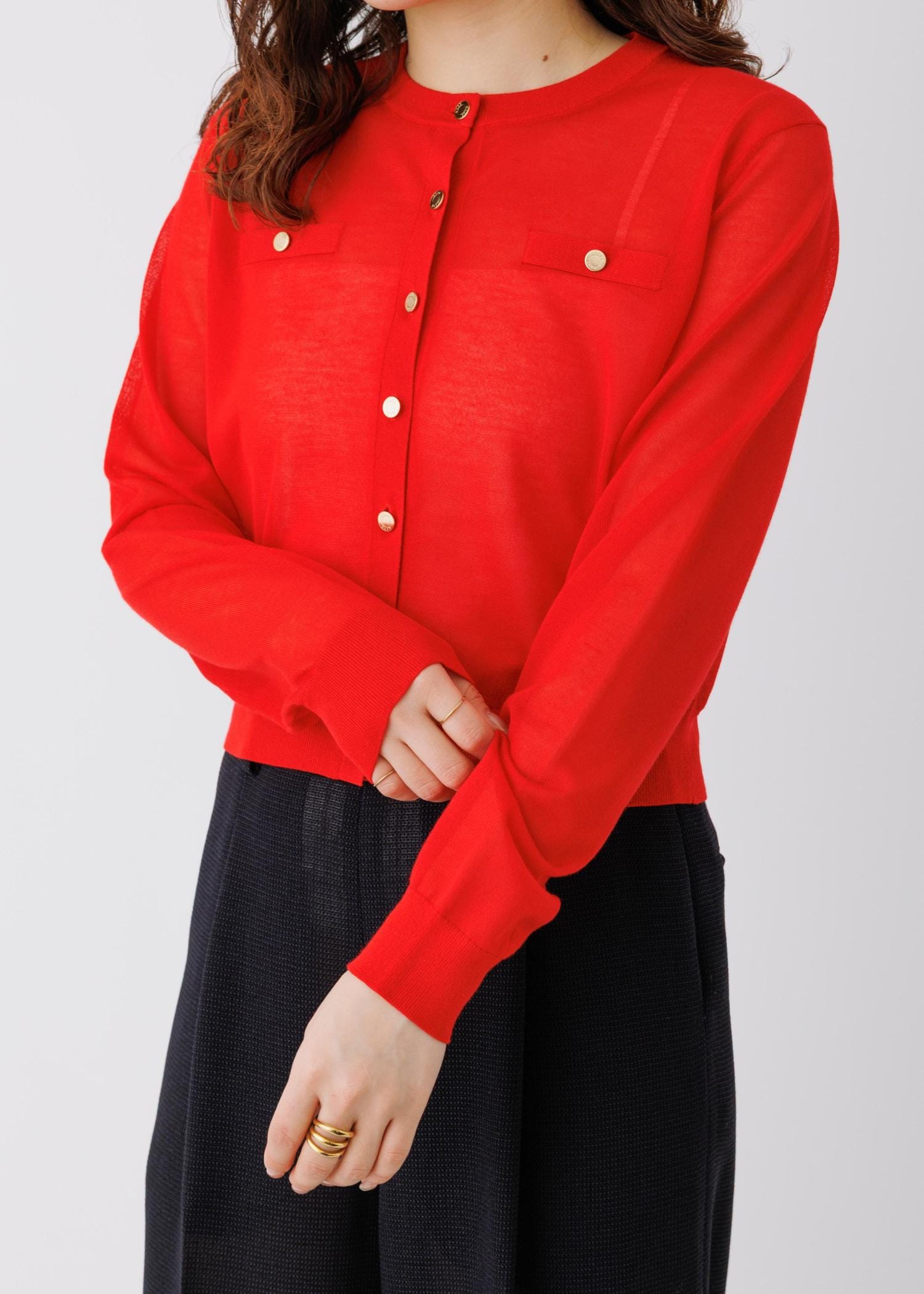 予約ROPÉLEVITA 金ボタンクルーネックシアーカーディガン/接触冷感・イージーケアレッド / F¥20,900レビューフリーサイズです。