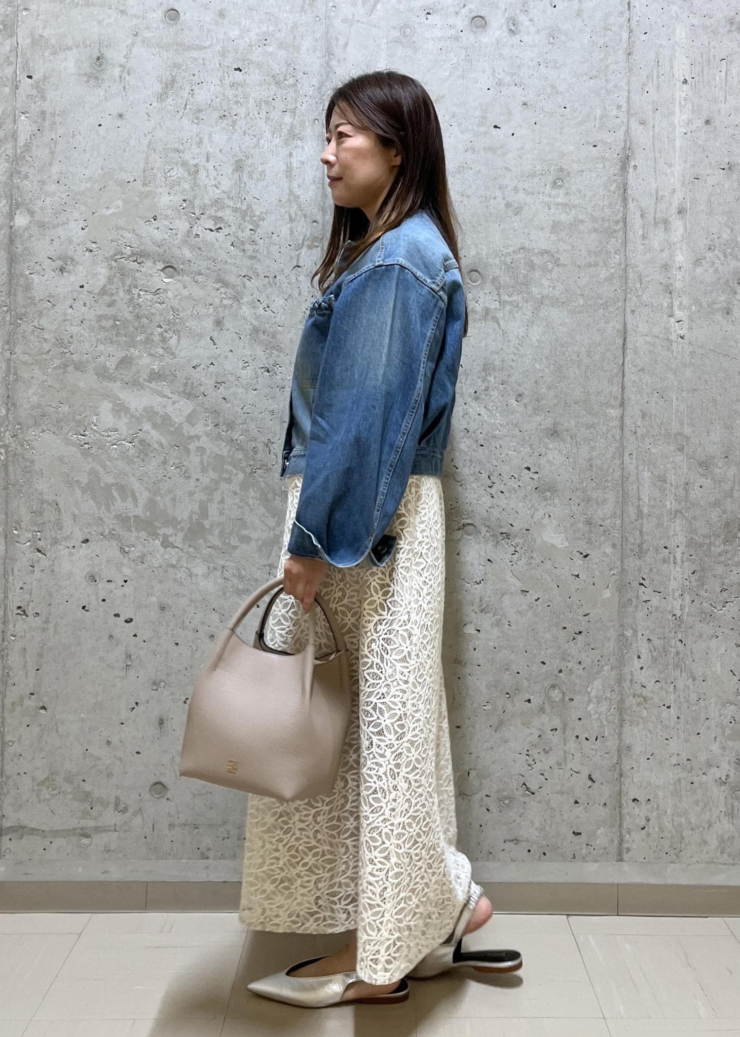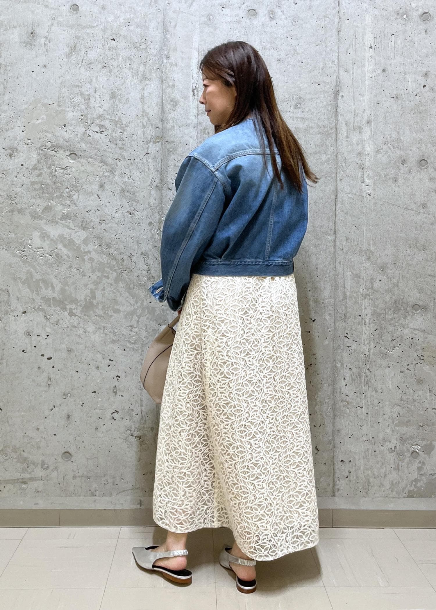 レーススカートはデニムジャケットと合わせて甘くならないようにしました。