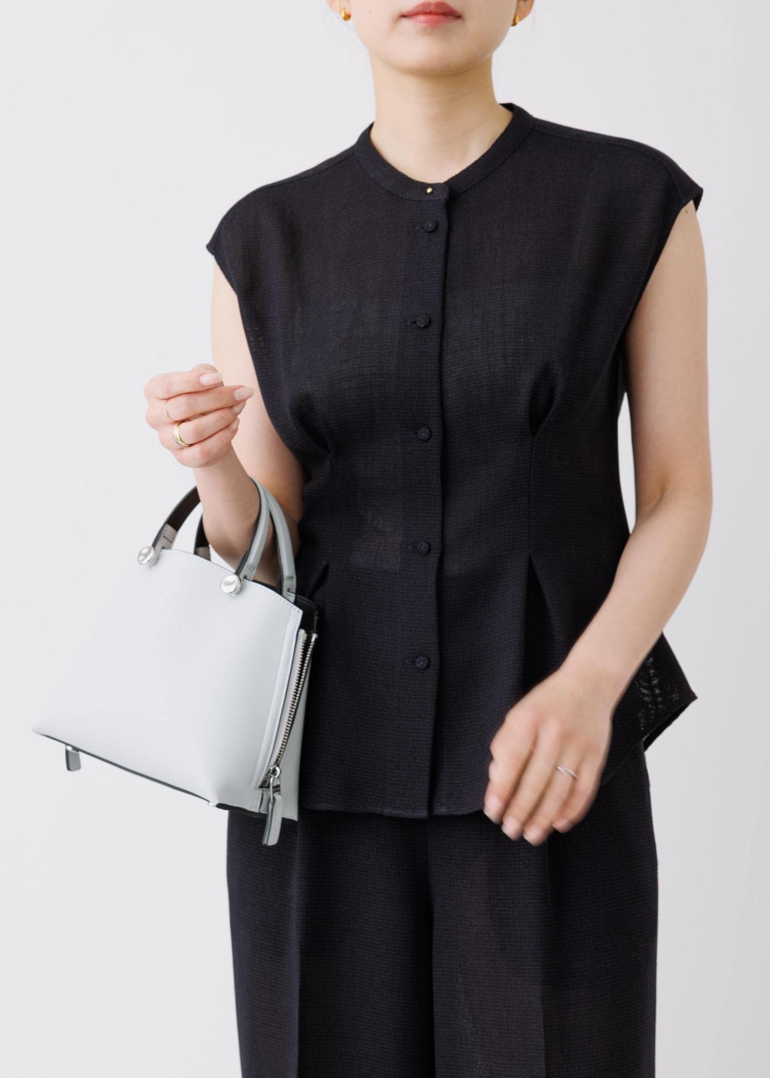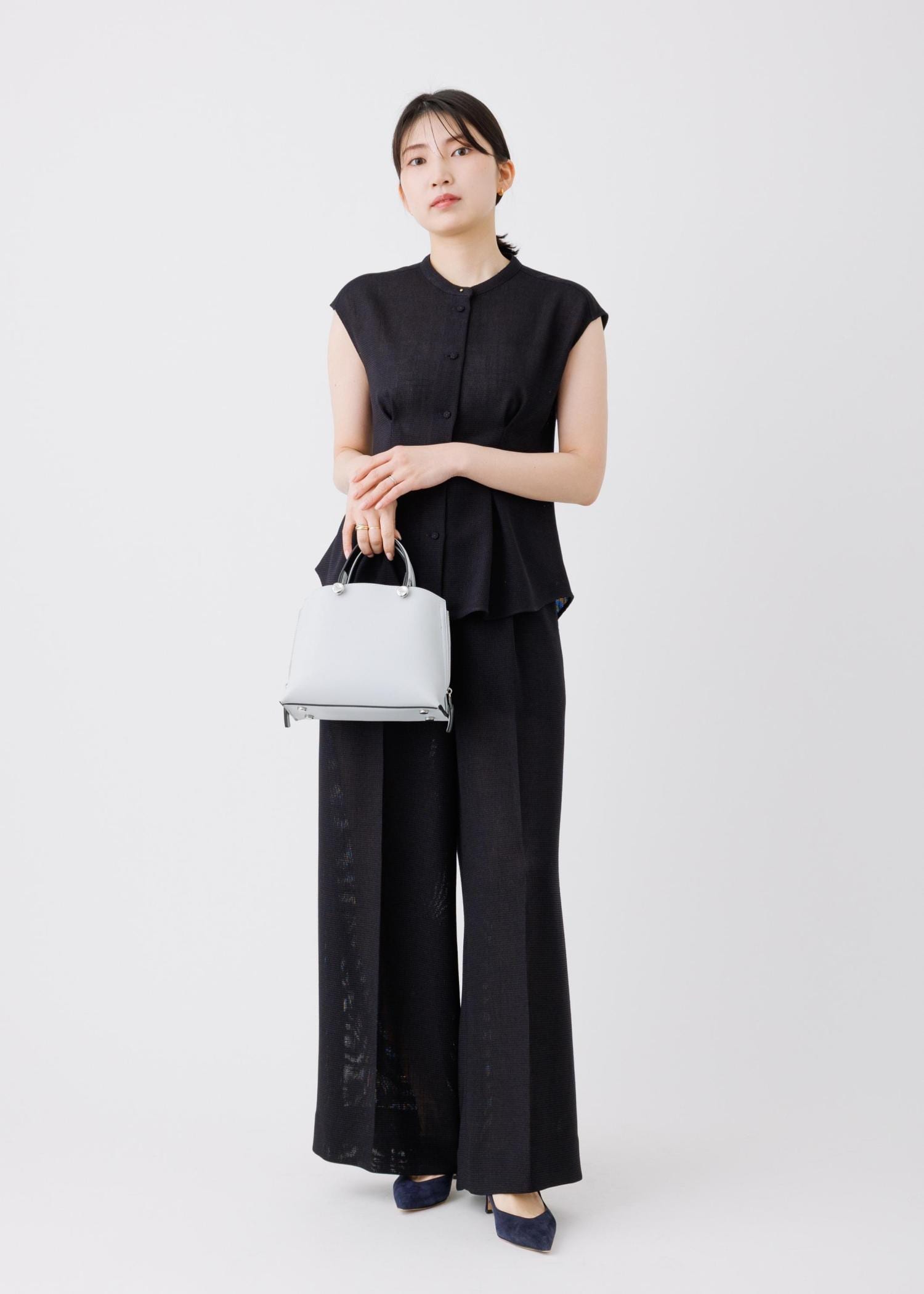 予約ROPÉカラミ織りタックナロースタンドブラウス/セットアップ対応・イージーケアネイビー / 38¥23,100レビュー身幅は適度なゆとりがありつつ、ウエストラインがキュッとシェイプされたペプラムデザインで