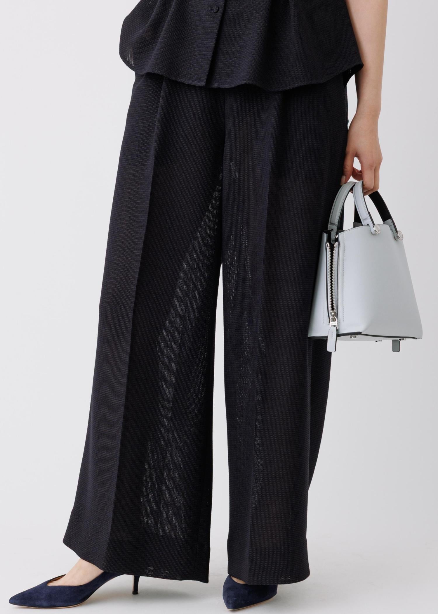 予約ROPÉカラミ織りワンタックワイドパンツ/セットアップ対応・イージーケアネイビー / 38¥27,500レビュー身長164㎝、普段38サイズ着用。