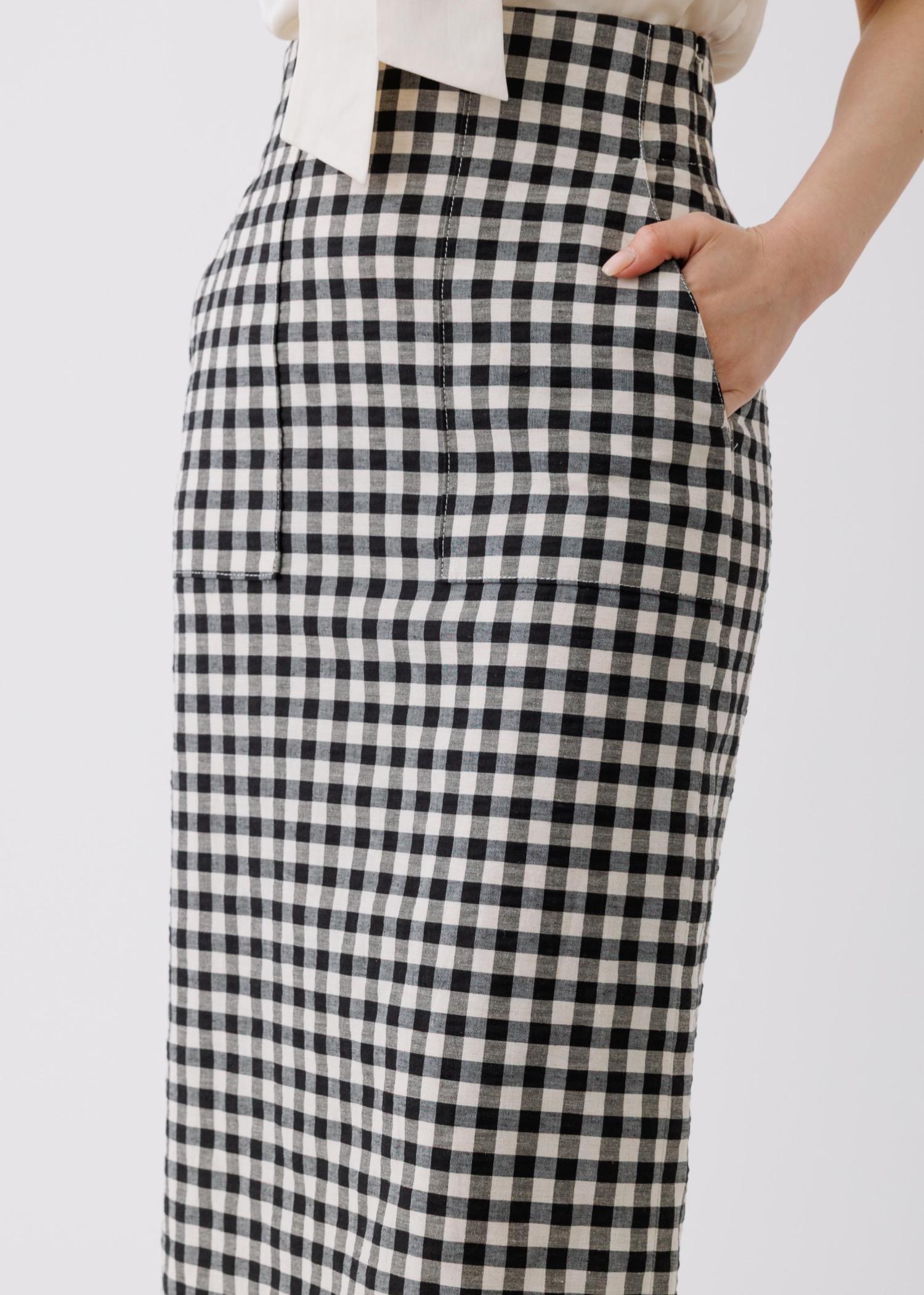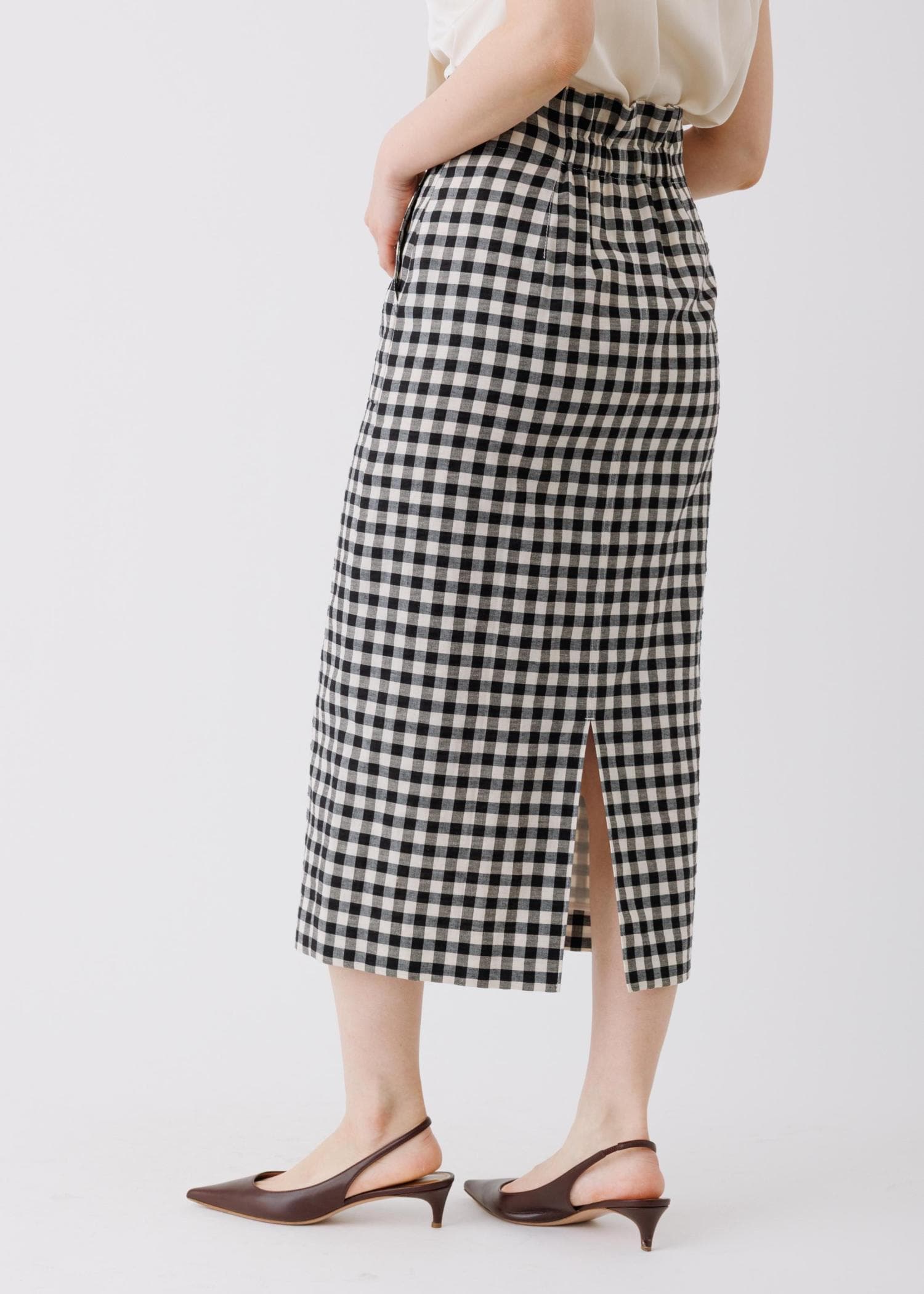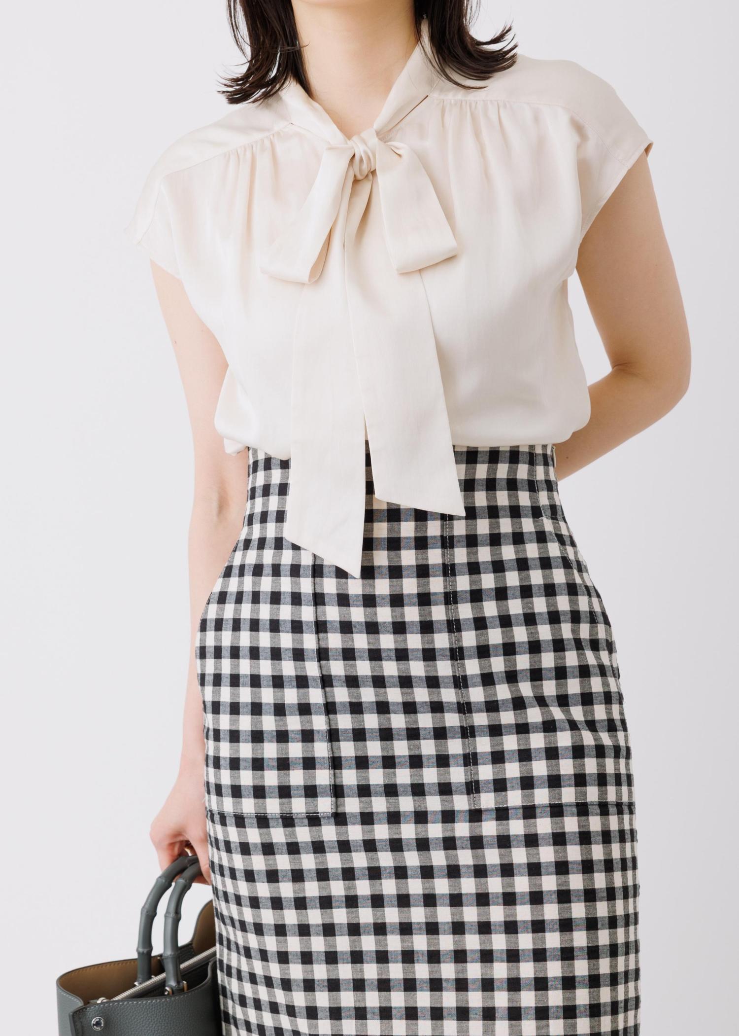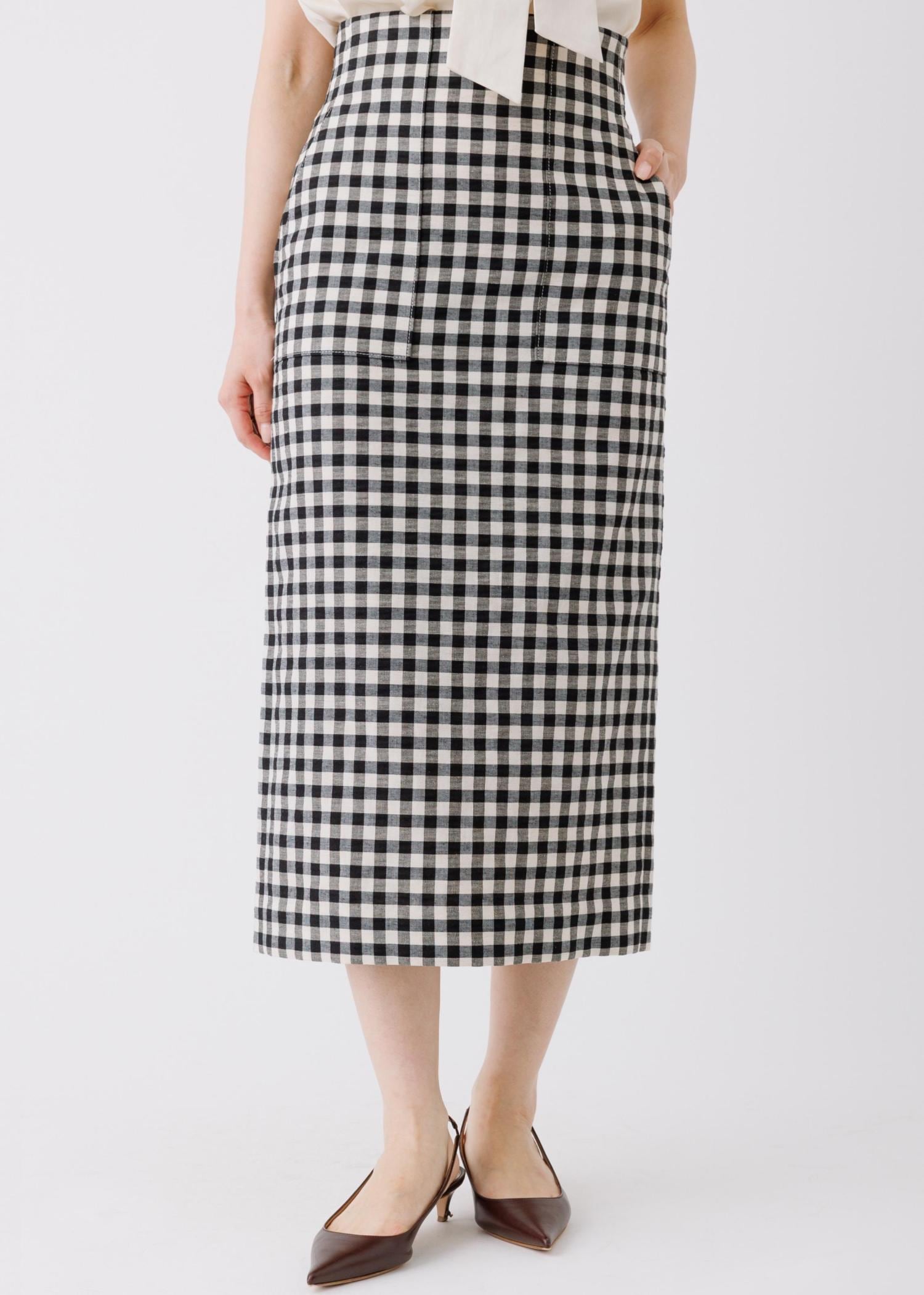 予約ROPÉ[美人スカート]リネン混ギンガムチェックポケット付きタイトスカート/26SS・イージーケアブラック系 / 38¥27,500レビュー身長164㎝、ボトムが普段38サイズを着用。