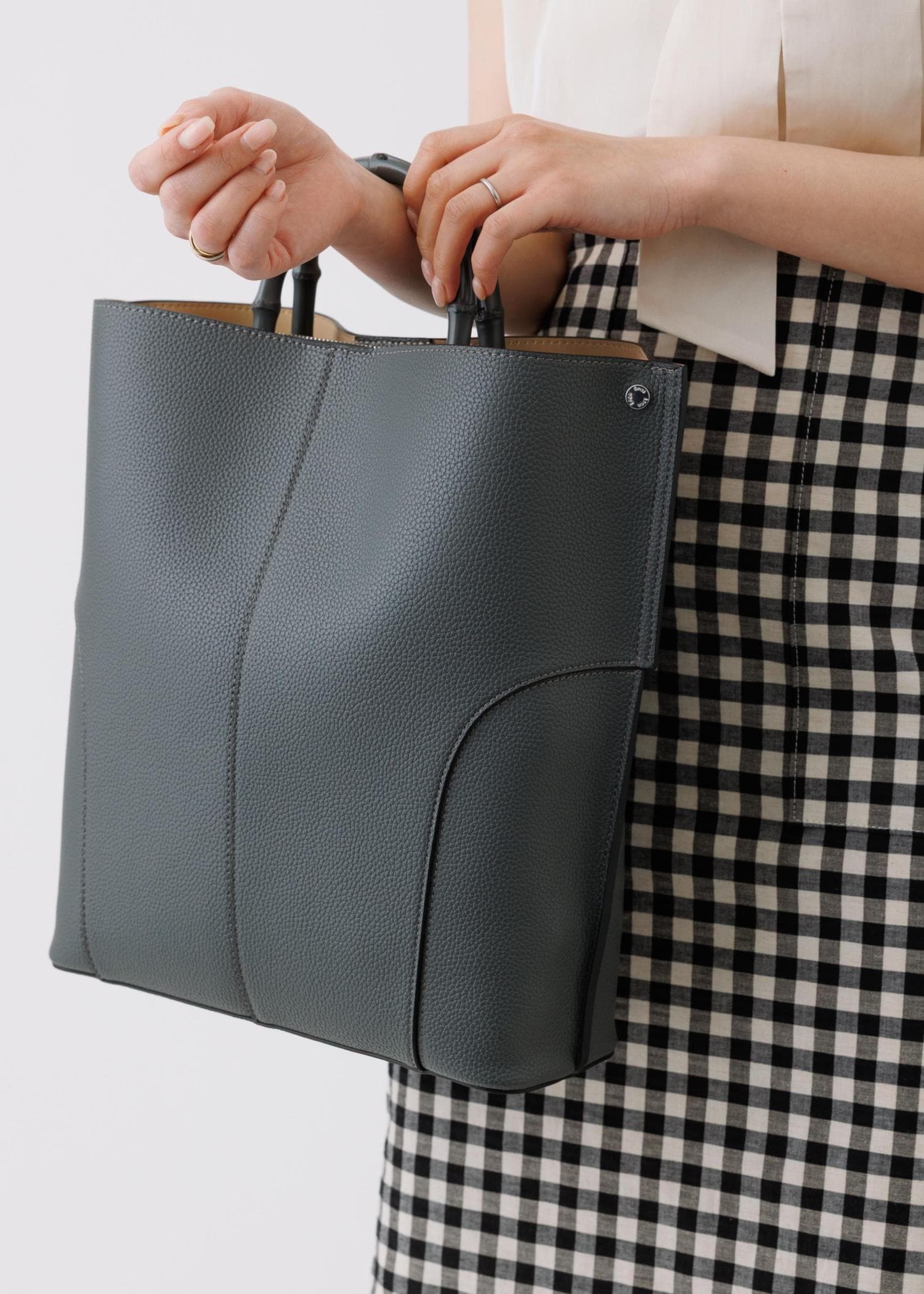 ROPÉ【E'POR】BAMBOO BAG Large/A4対応・通勤・26SS新色グレー / F¥19,800レビューマチが10㎝以上あり A4が入るサイズですが、そこまで大きすぎないのでスマートに持てます。
