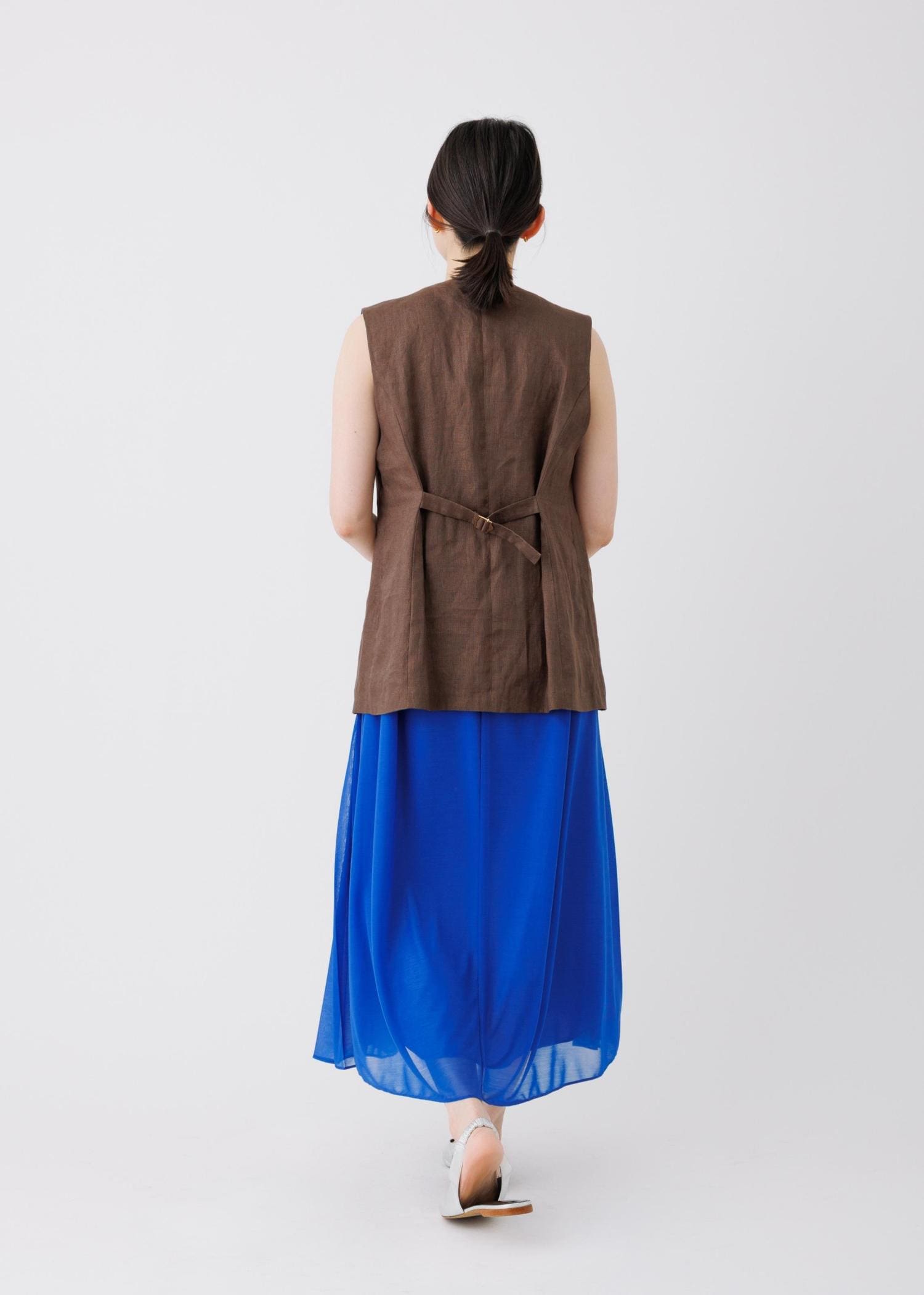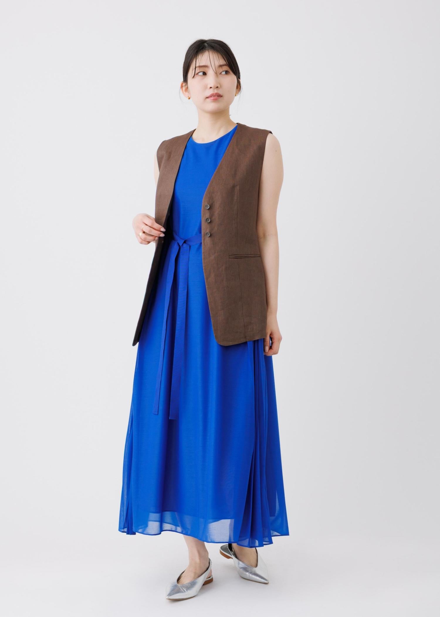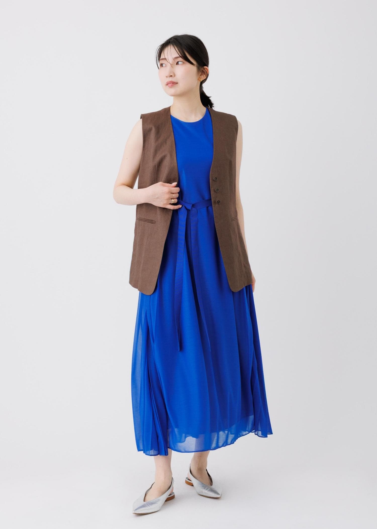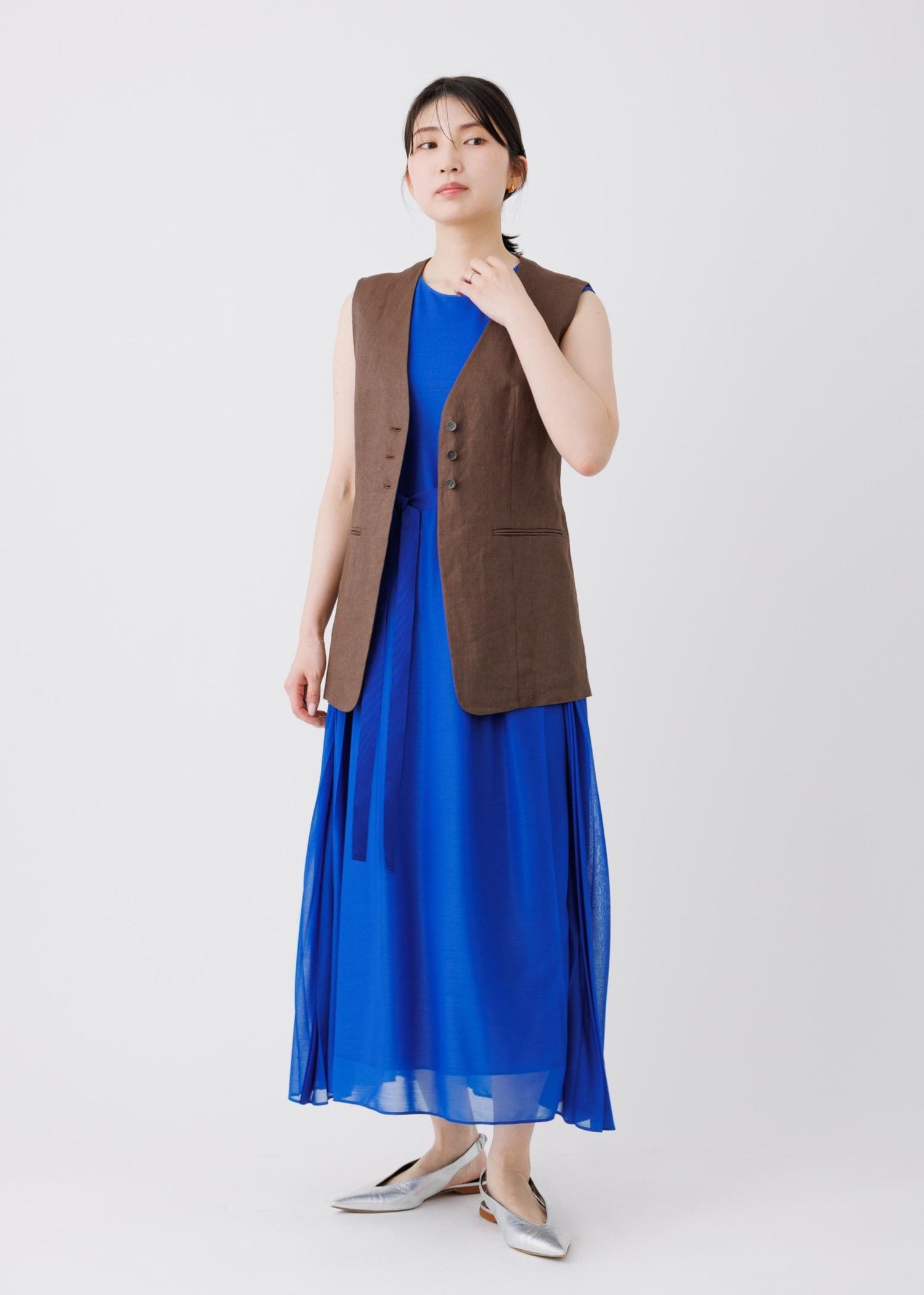 ROPÉリネンスリーブレスジレ/セットアップ対応ダークブラウン系 / F¥27,500レビューコンパクトなサイズ感ですが身幅は少し余裕があり、ニットも重ね着できます。