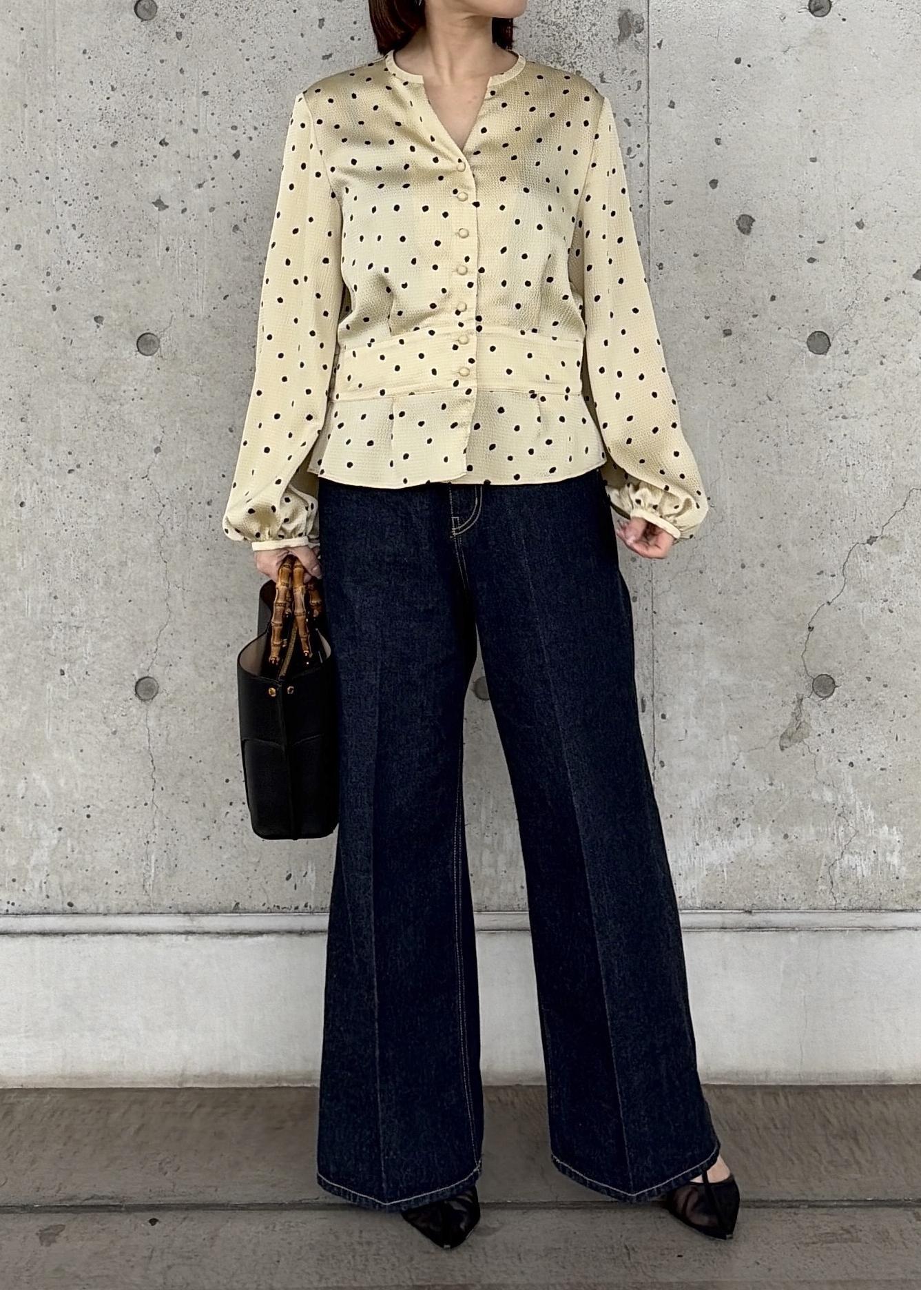 ROPÉドットプリントペプラムブラウス/イージーケアベージュ / 38¥26,400レビュー身長156cm、38サイズ着用。