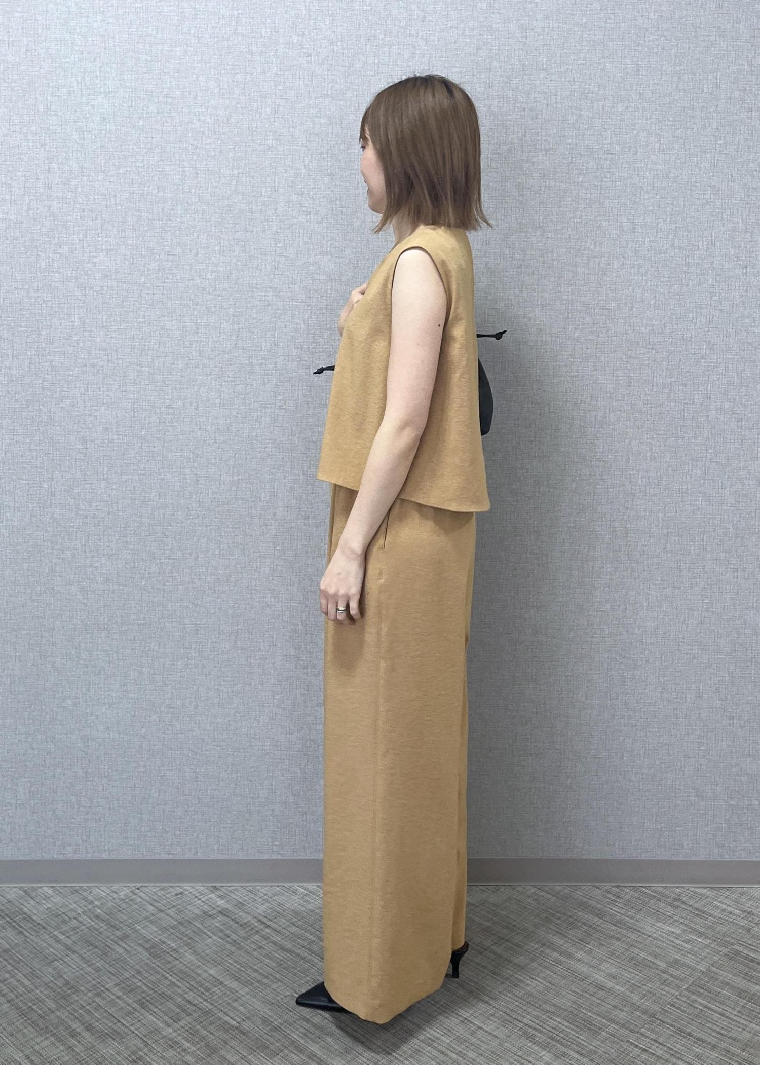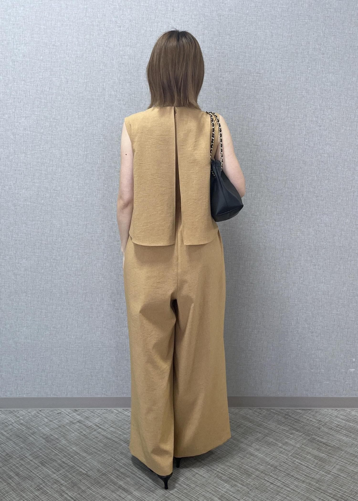 ROPÉバックオープンオールインワン/イージーケアベージュ / F¥27,500レビュー肌離れの良いサラッとした生地で涼しく着用できます。腰位置が高くスマートな印象にしてくれます。