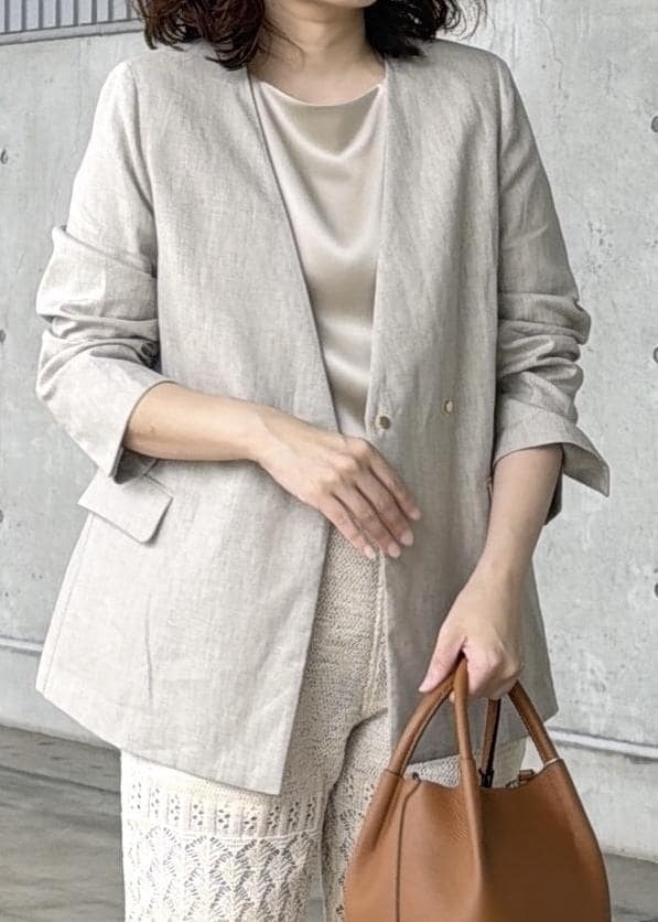 ROPÉリネンノーカラージャケット/セットアップ対応ベージュ / 38¥38,500レビュー身長161cmで普段38サイズを着用。