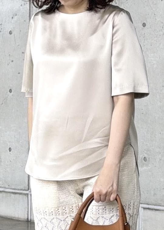 ROPÉドレープサテンティーブラウス/セットアップ対応・イージーケアベージュ / F¥20,900レビュー身長161㎝で普段38サイズを着用しています。