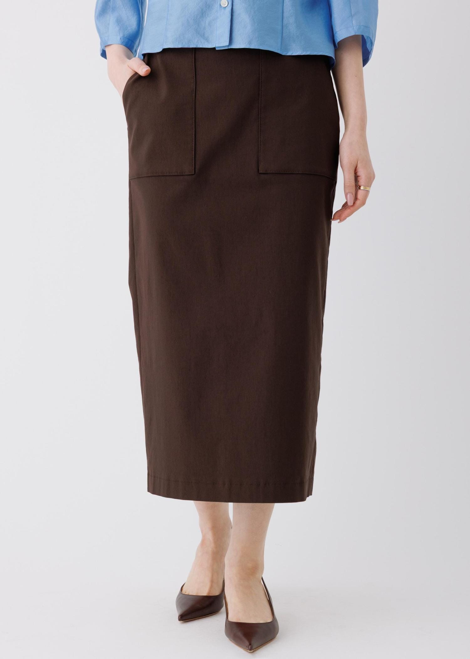 ROPÉ[美人スカート]ハイストレッチポケット付きタイトスカート/26SSダークブラウン / 38¥19,800レビュー身長165cmで38サイズを着用しています。