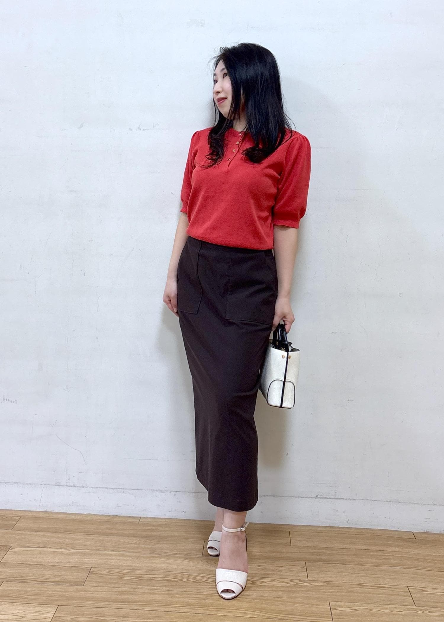 ROPÉ[美人スカート]ハイストレッチポケット付きタイトスカート/26SSダークブラウン / 38¥19,800レビュー身長152cm 38サイズ