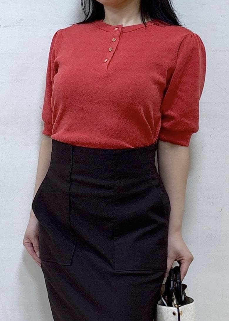 ROPÉ前後2WAY5分袖プルオーバー/イージーケアレッド / F¥15,400レビュー身長152cm Fサイズ