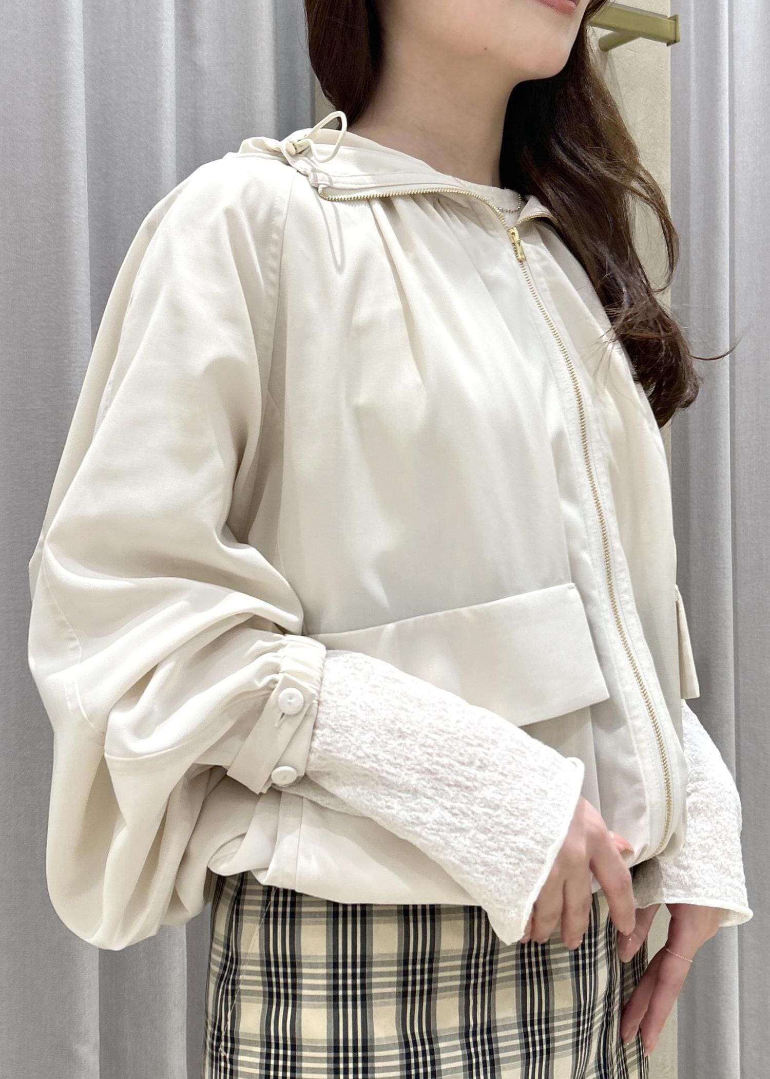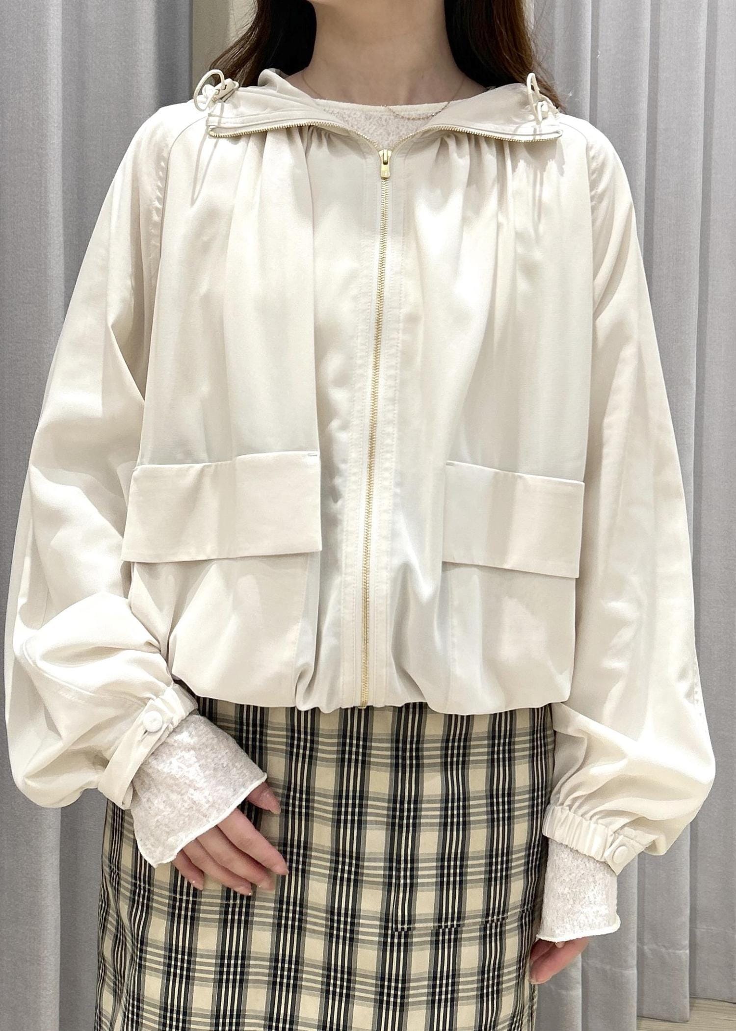 胸元のギャザーが女性らしい印象で、フェミニン派の方におすすめなマウンテンパーカーです◎ -