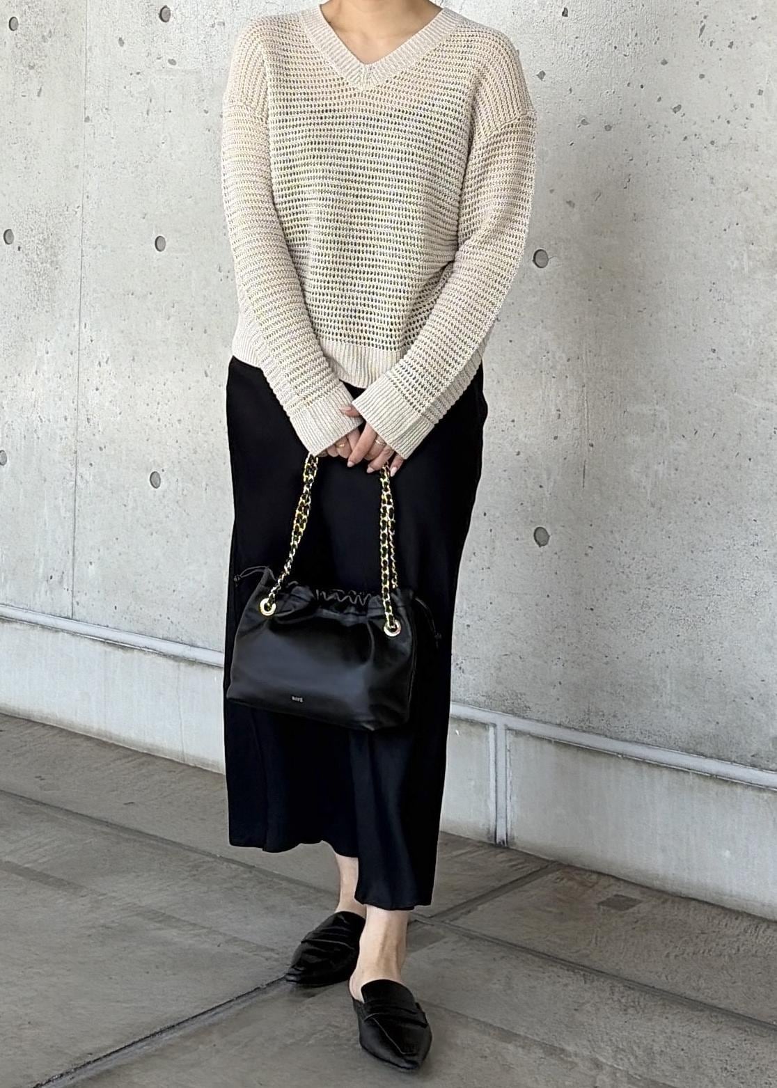 ゴールドのチェーンがアクセントになり、色々なコーディネートに上品さなどプラスしてくれます!