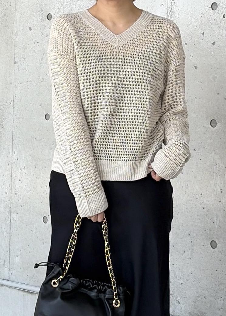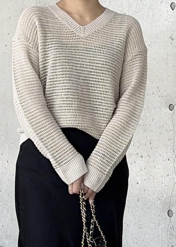 予約ROPÉリネン畦編みVネックニット/イージーケアベージュ / F¥24,200レビュー162センチ 普段トップス38サイズ