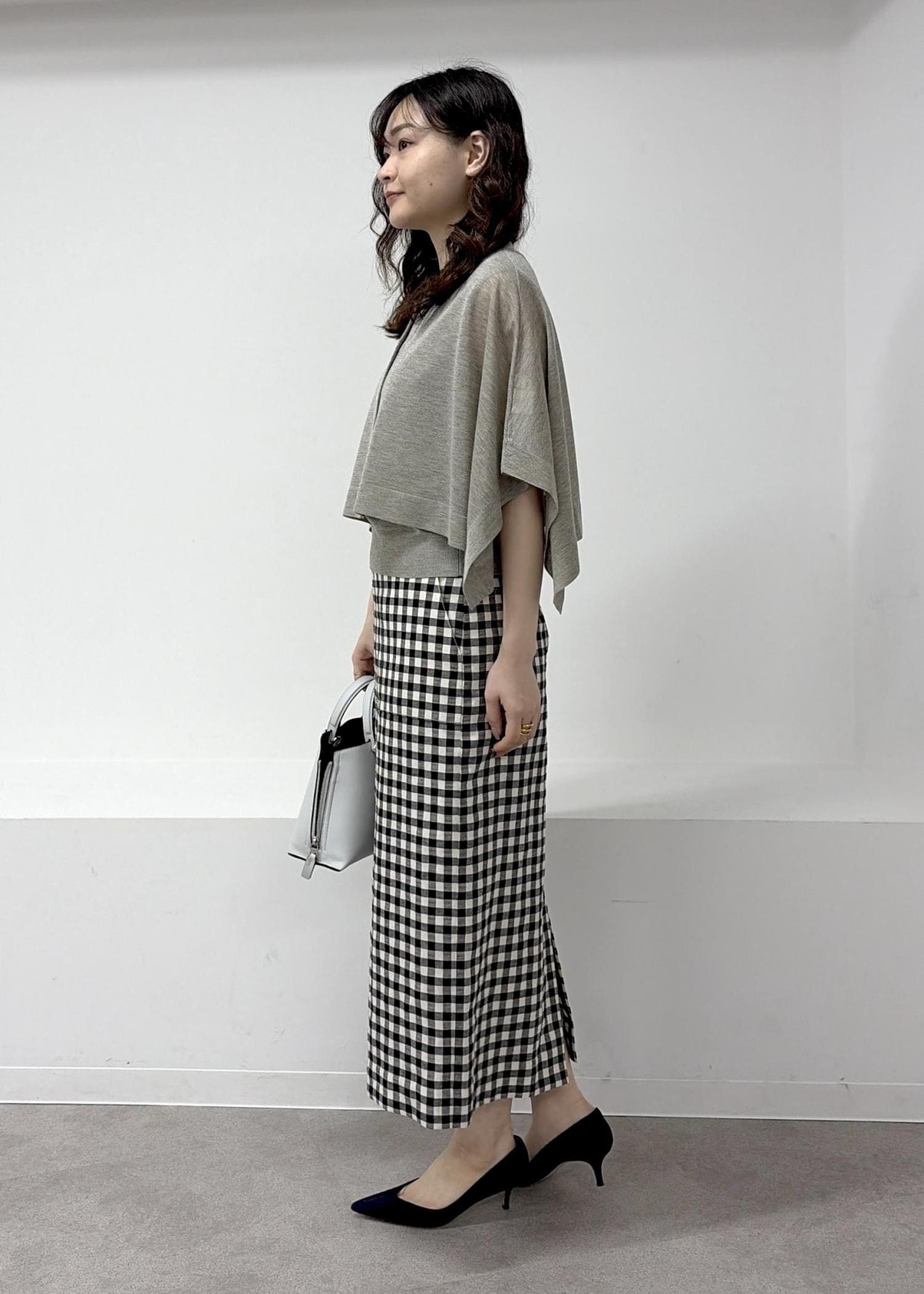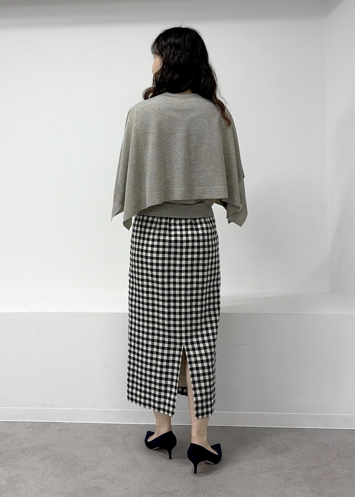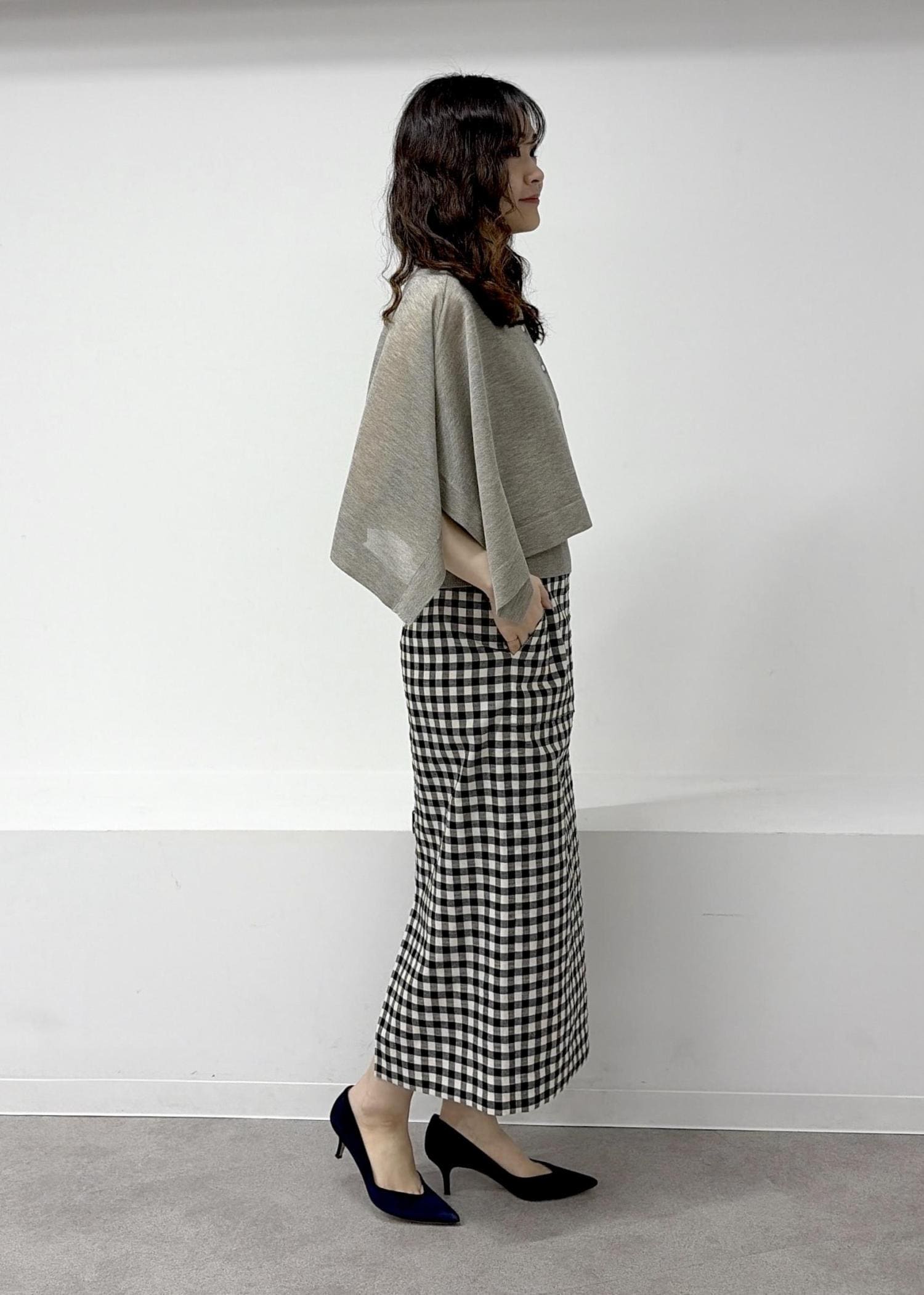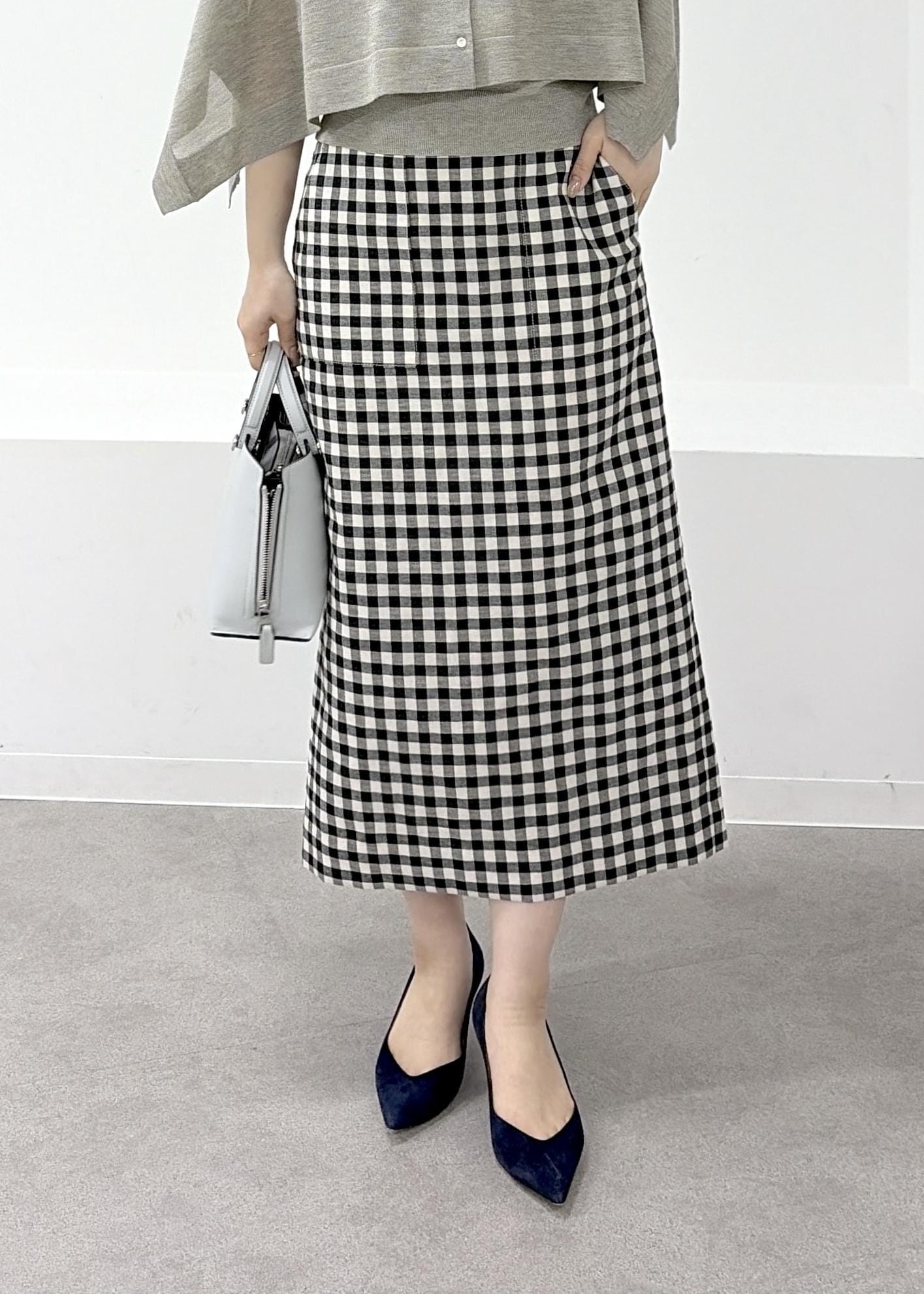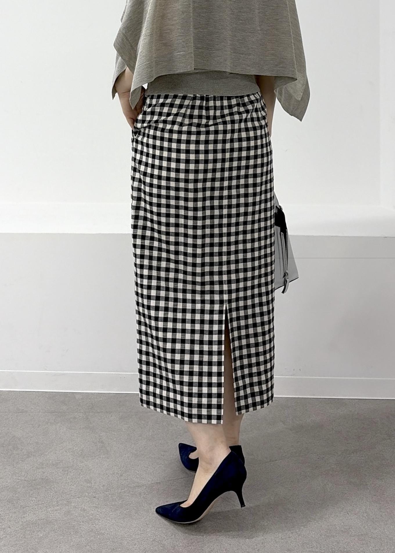 予約ROPÉ[美人スカート]リネン混ギンガムチェックポケット付きタイトスカート/26SS・イージーケアブラック系 / 38¥27,500レビュー38サイズを着用しています。