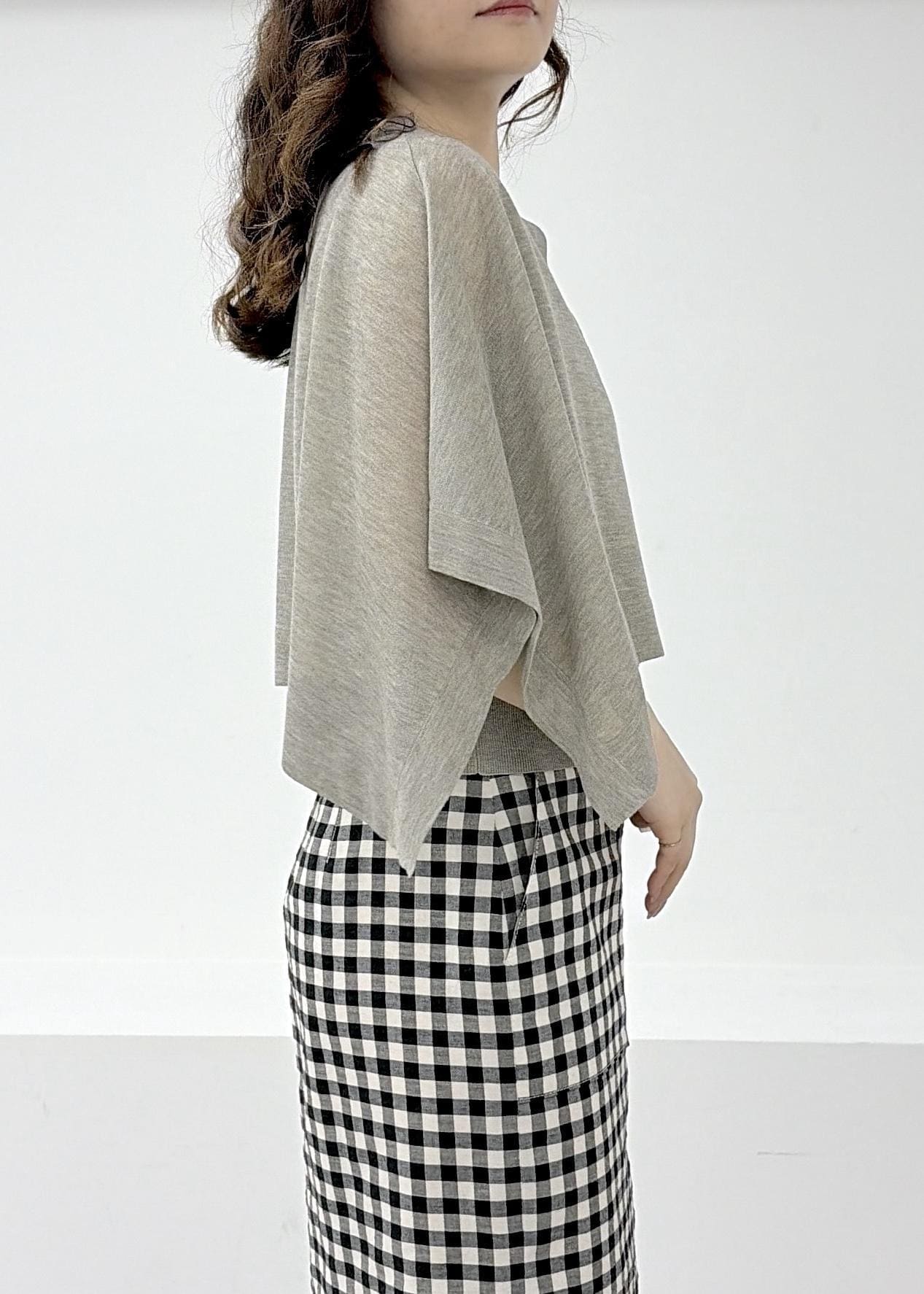 ケープは肘が隠れるくらいの丈感で、二の腕をカバーしてくれます◎