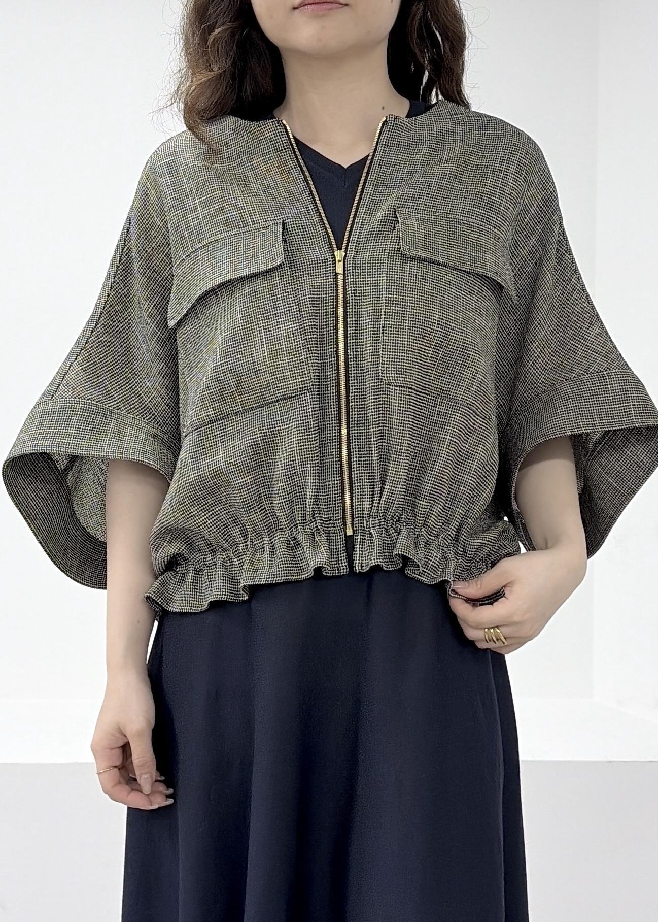 予約ROPÉカラミ織りドルマンスリーブショートブルゾン/セットアップ対応・イージーケアブラック系 / F¥27,500レビューフリーサイズです。