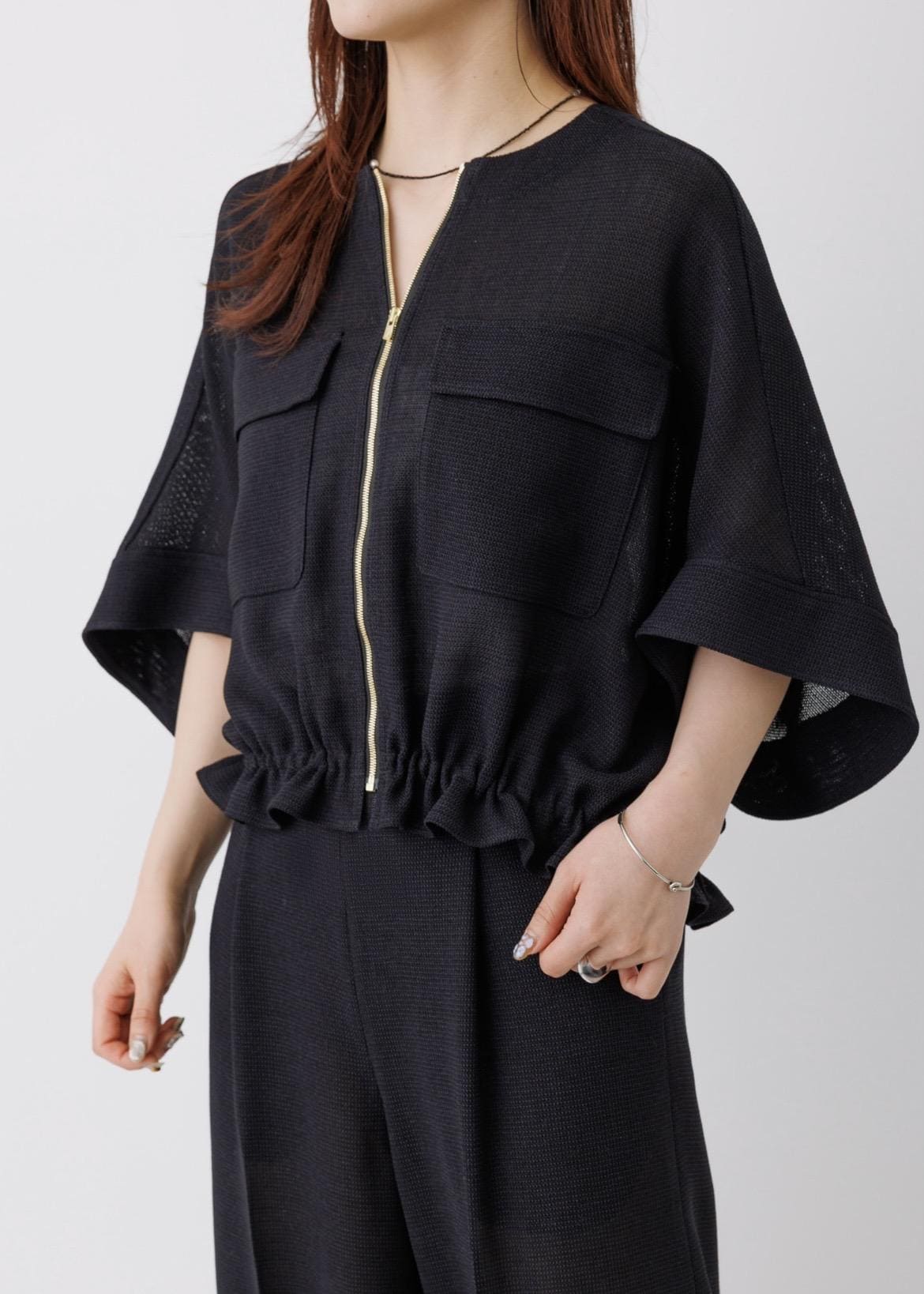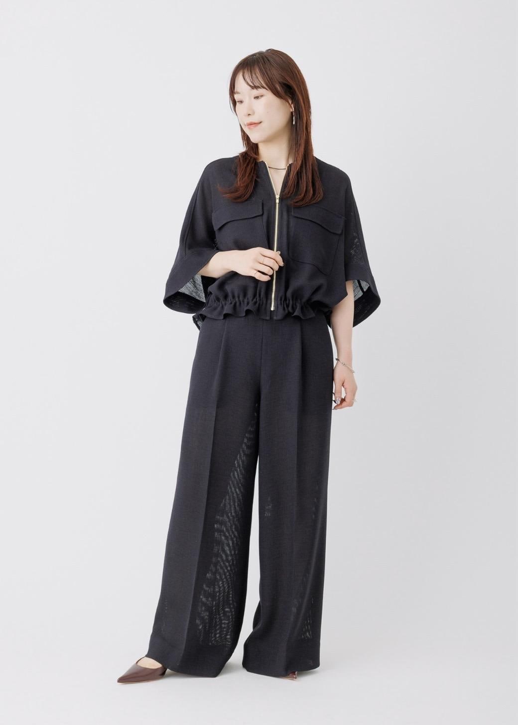 予約ROPÉカラミ織りドルマンスリーブショートブルゾン/セットアップ対応・イージーケアネイビー / F¥27,500レビュー着丈は腰回りが隠れるくらいのやや短めの丈感。裾一周にギャザーがあり、アウトで着ると腰位置が高く見えスタイルアップができておすすめです◎