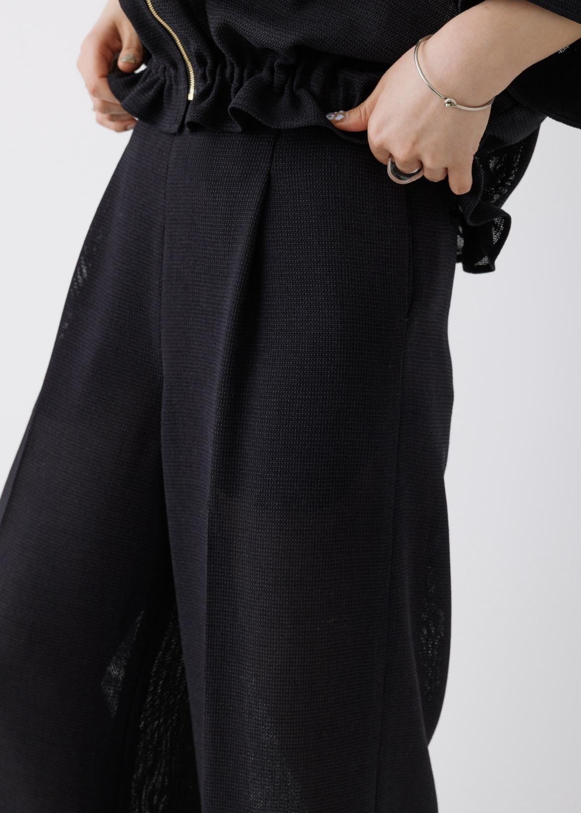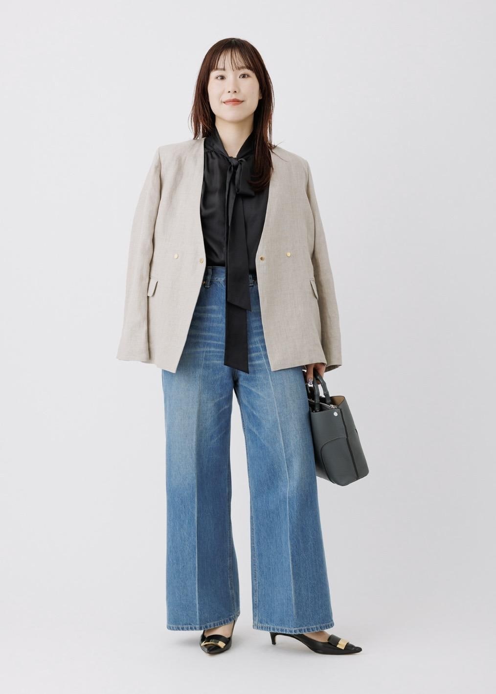 腰から広がるストレートシルエットで太ももやお尻周りにゆとりがあり、ラインを拾いにくいです。