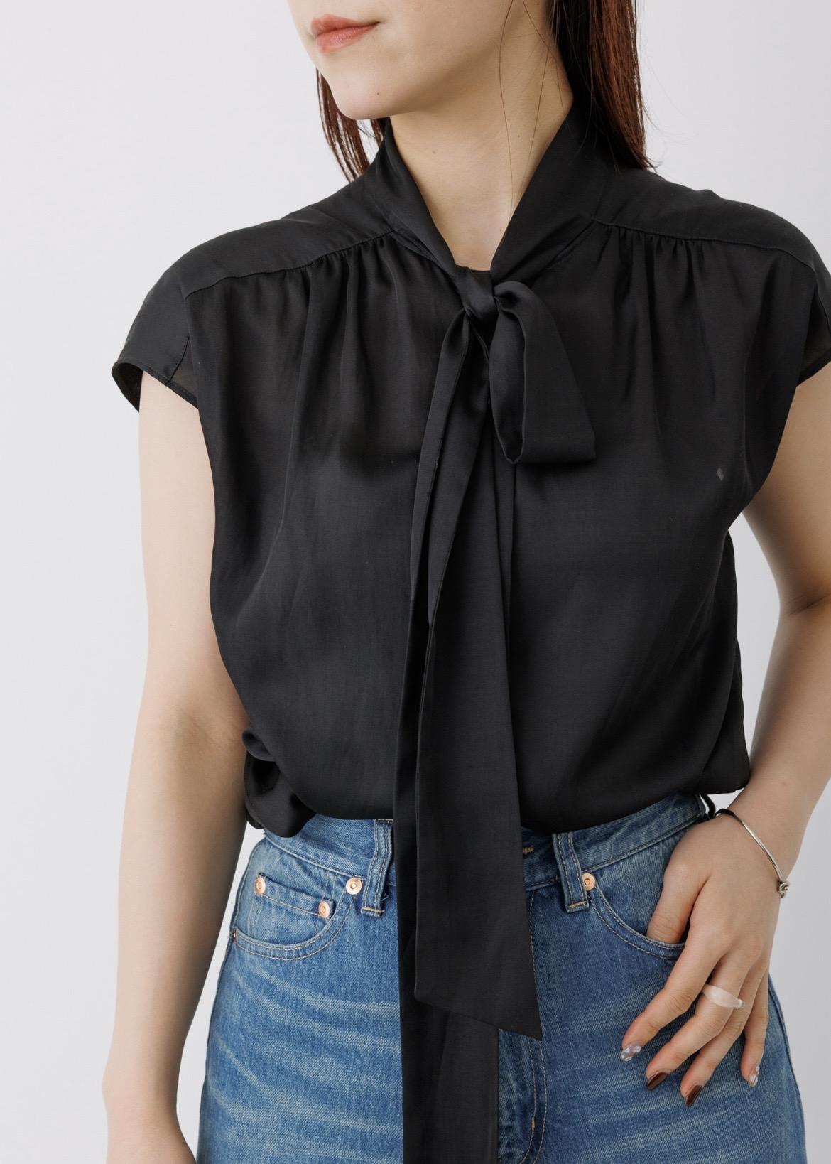 予約ROPÉサテンシルケットボウタイブラウス/イージーケアブラック / 38¥23,100レビュー着丈はお腹周りやお尻が半分隠れるくらいの長すぎない丈感。