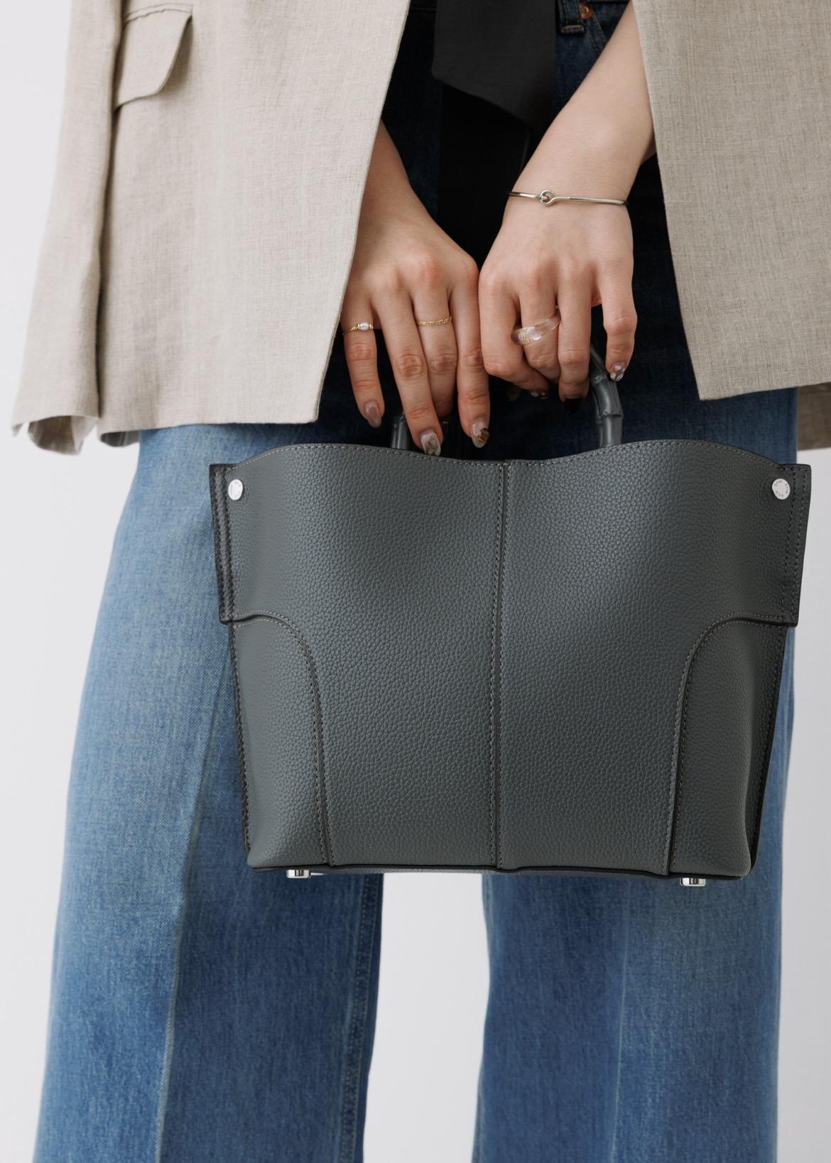 ROPÉ【E'POR】BAMBOO BAG Medium/軽量・通勤・26SS新色グレー / F¥18,700レビュー長財布、500mlペットボトル、スマホ、カードケース、ハンカチ、リップなどが入るサイズ感。