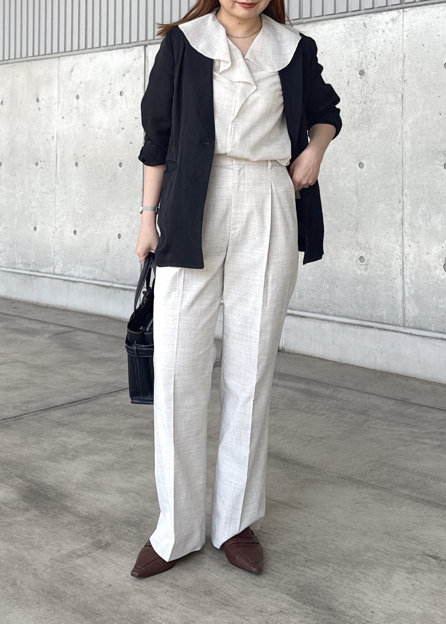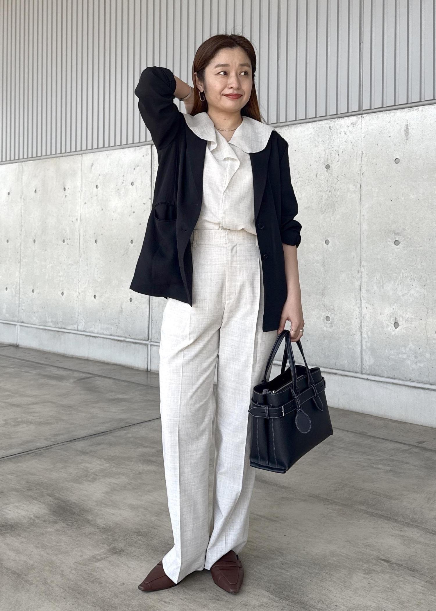 フリル襟が今年らしさを演出してくれるので、ジャケットやカーディガンからフリル襟を出して着ていただきたいです!