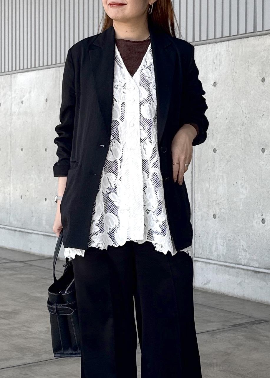 ROPÉシアージャケット/セットアップ対応ブラック / 38¥36,300レビューブラウスのような光沢のある素材で、やや少し透け感がある軽やかなジャケットです。