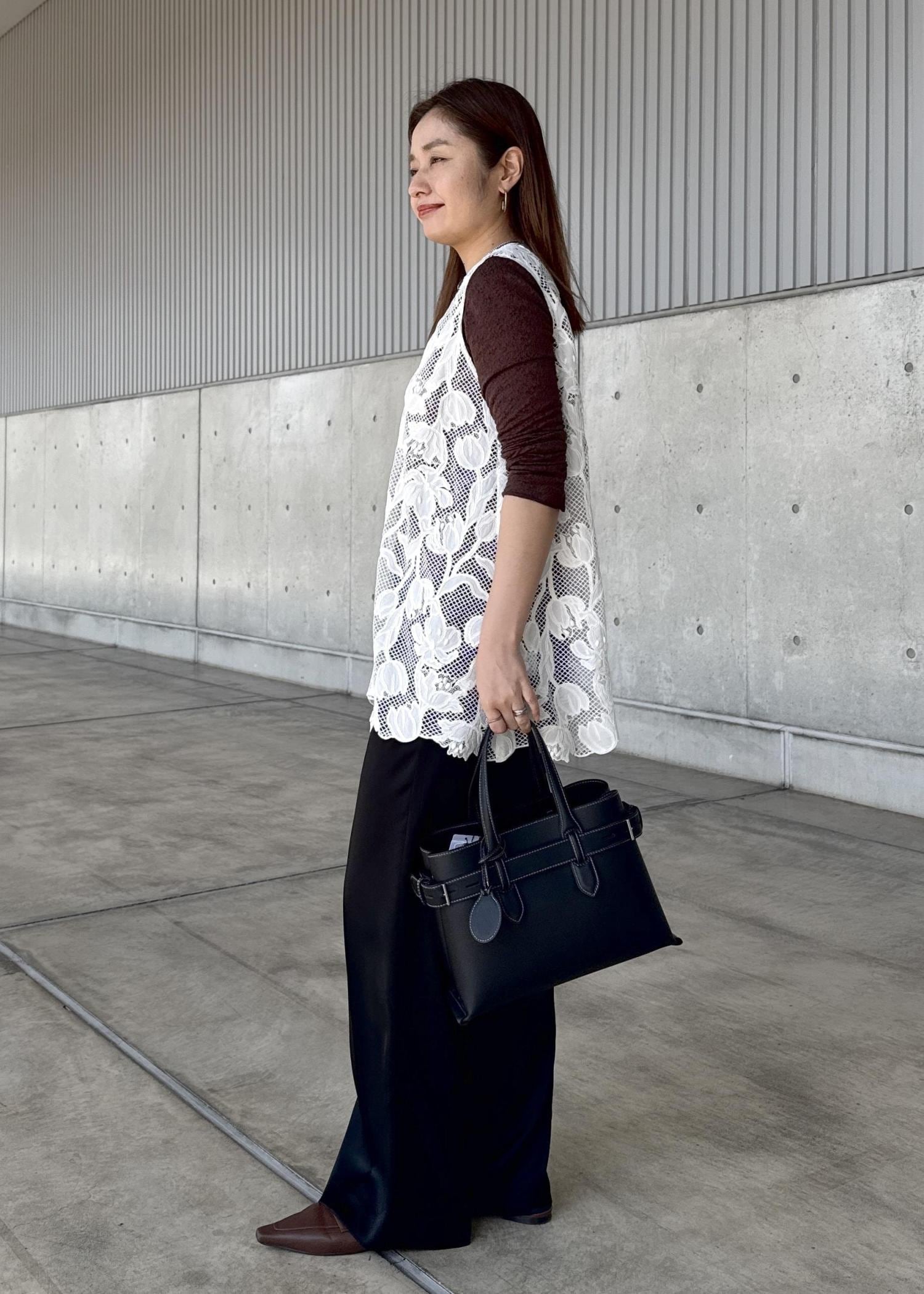 ブラウンはさほど透けないので、インナーは黒でも白でも着用可能です。 -