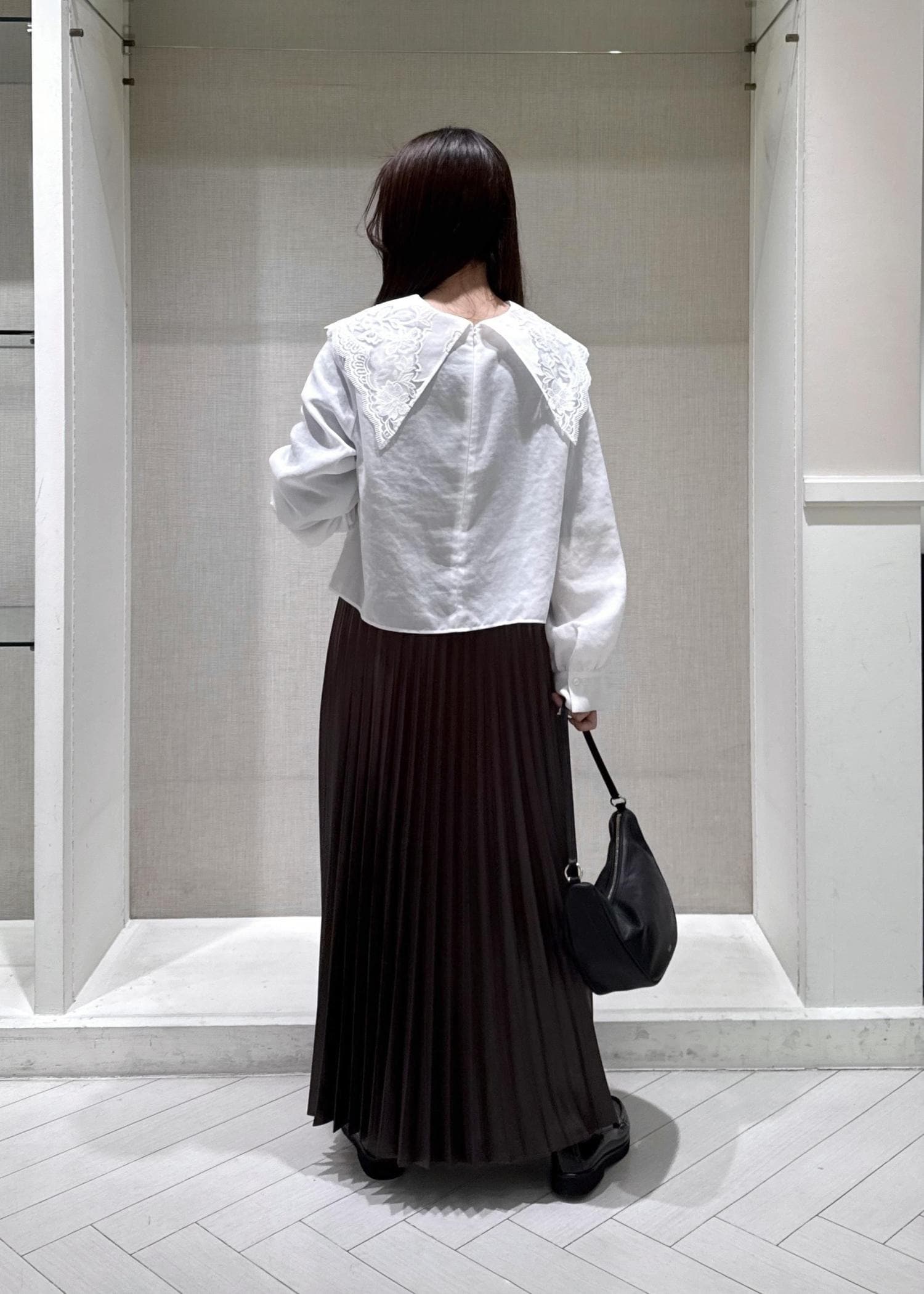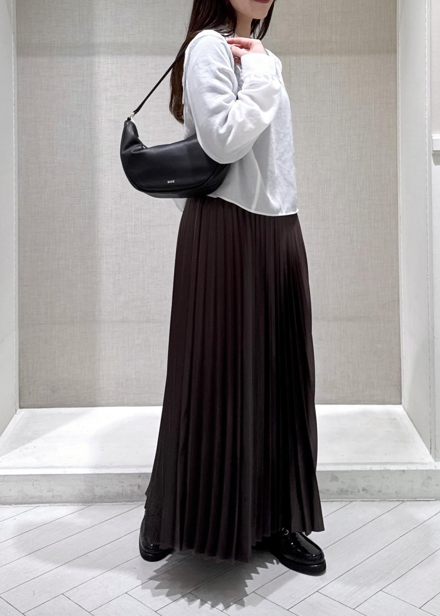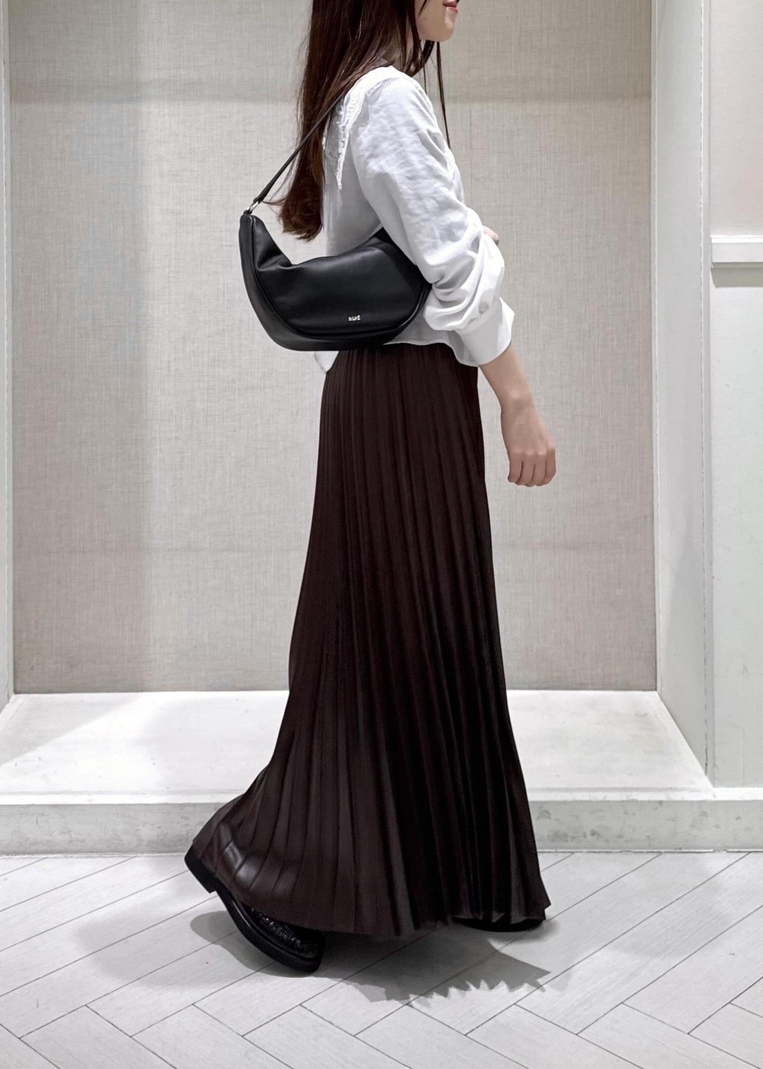 ROPÉシャイニープリーツスカート/イージーケアダークブラウン / F¥26,400レビュー身長150cmでフリーサイズ着用。