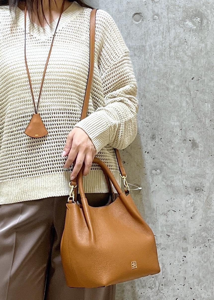 ROPÉハートモチーフ サングラスホルダーキャメル / F¥9,900レビュー長さがあるので、バッグチャームやネックレスとしても使えます。