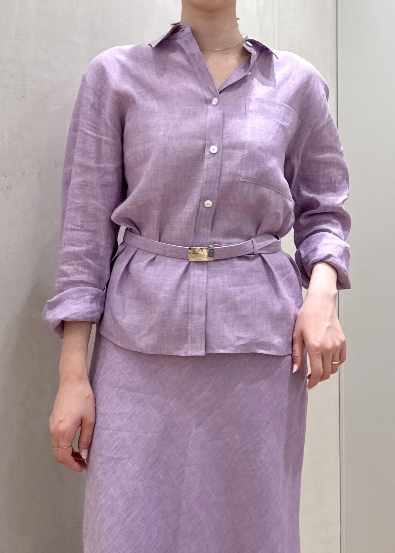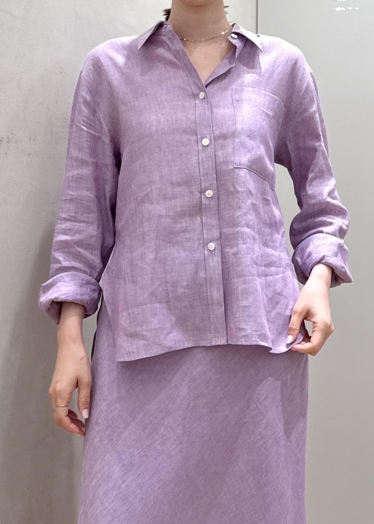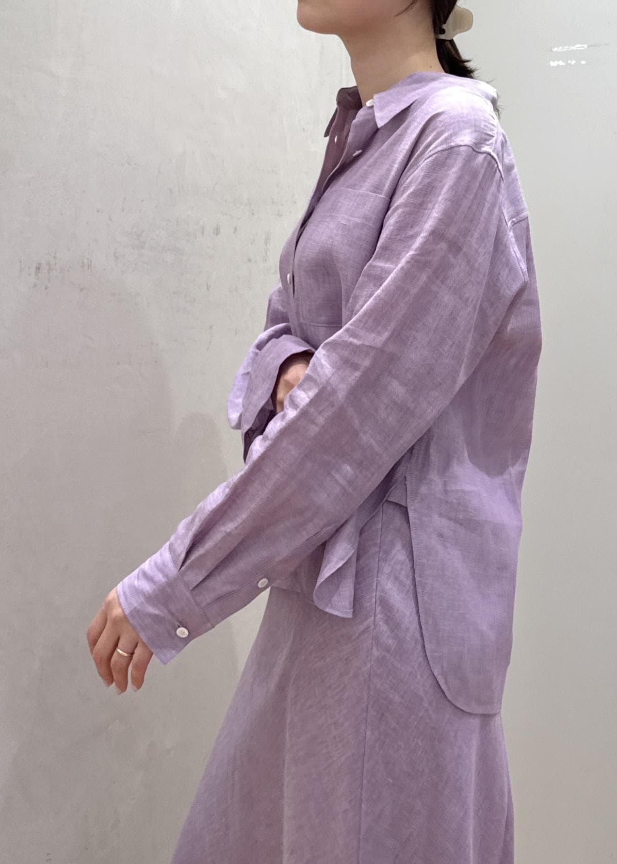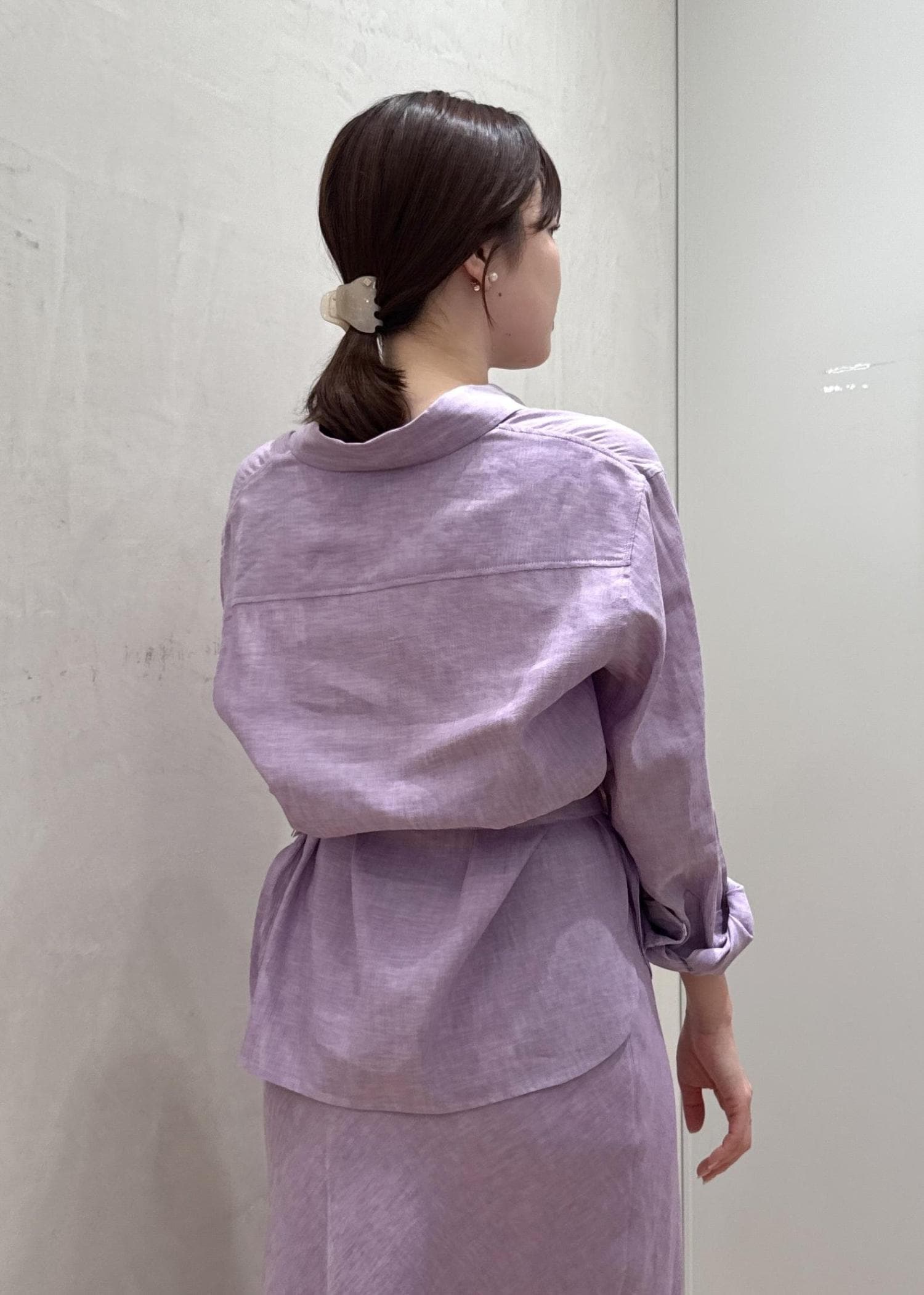 ROPÉシルク混リネンシャツ(無地&ストライプ)/イージーケア・セットアップ対応ラベンダー / 38¥23,100レビュー身長160cm、38サイズ着用。