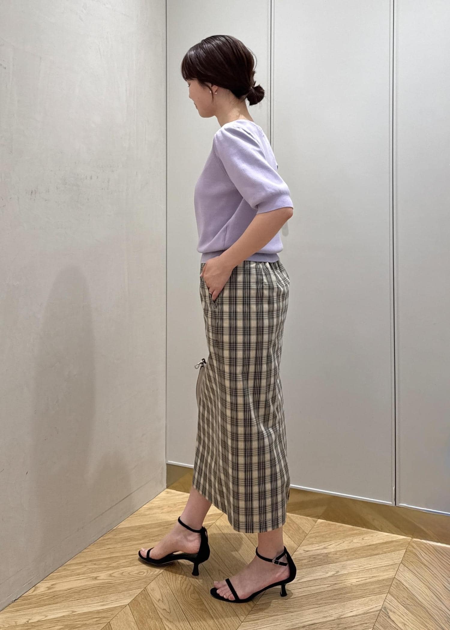 ヒールもフラットシューズも合わせやすいです。 -