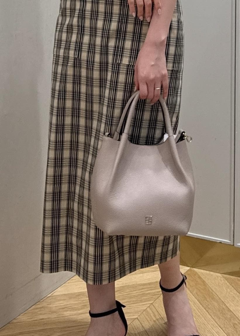 ROPÉ2WAYキューブボックスレザーハンドバッグチャコール / F¥33,000レビュー軽くて柔らかい牛革のバッグ。