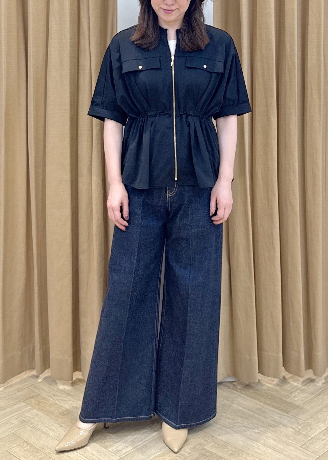 ROPÉフロントジップブルゾンブラウス/イージーケアネイビー / F¥27,500レビューウエスト縛りでスタイルUPがかなうブラウスです。
