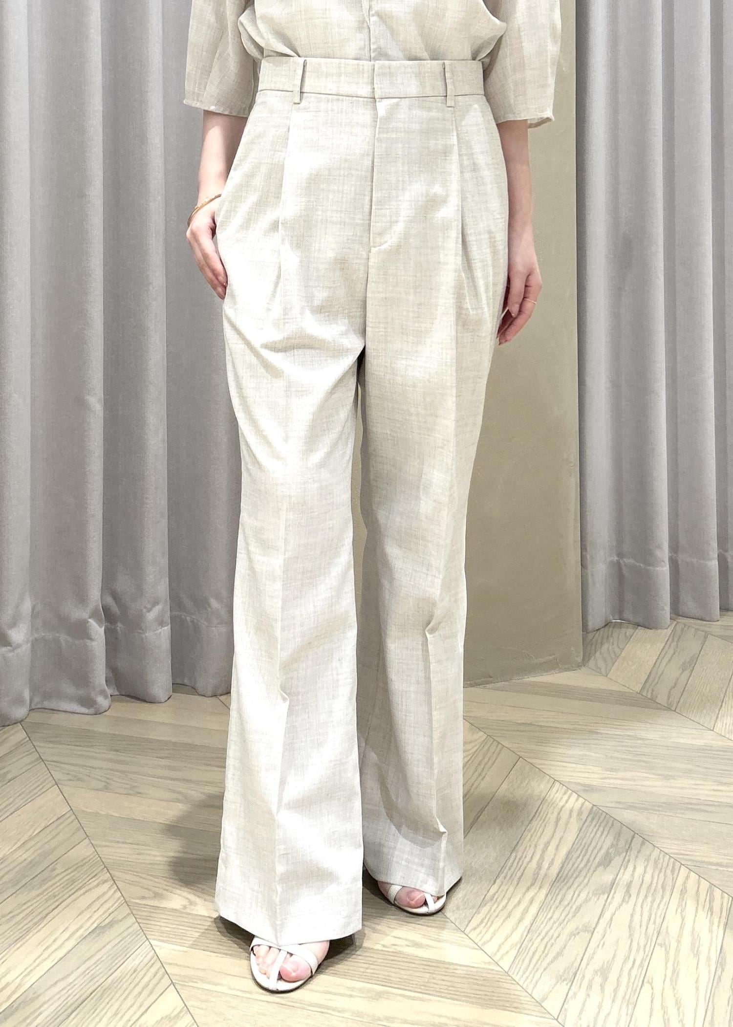ROPÉリネンライクセミフレアパンツ/セットアップ対応・イージーケアベージュ / 36¥19,800レビュー約5㎝のヒールを履き着用して、ギリギリ裾が床につかないくらいの長さでした。