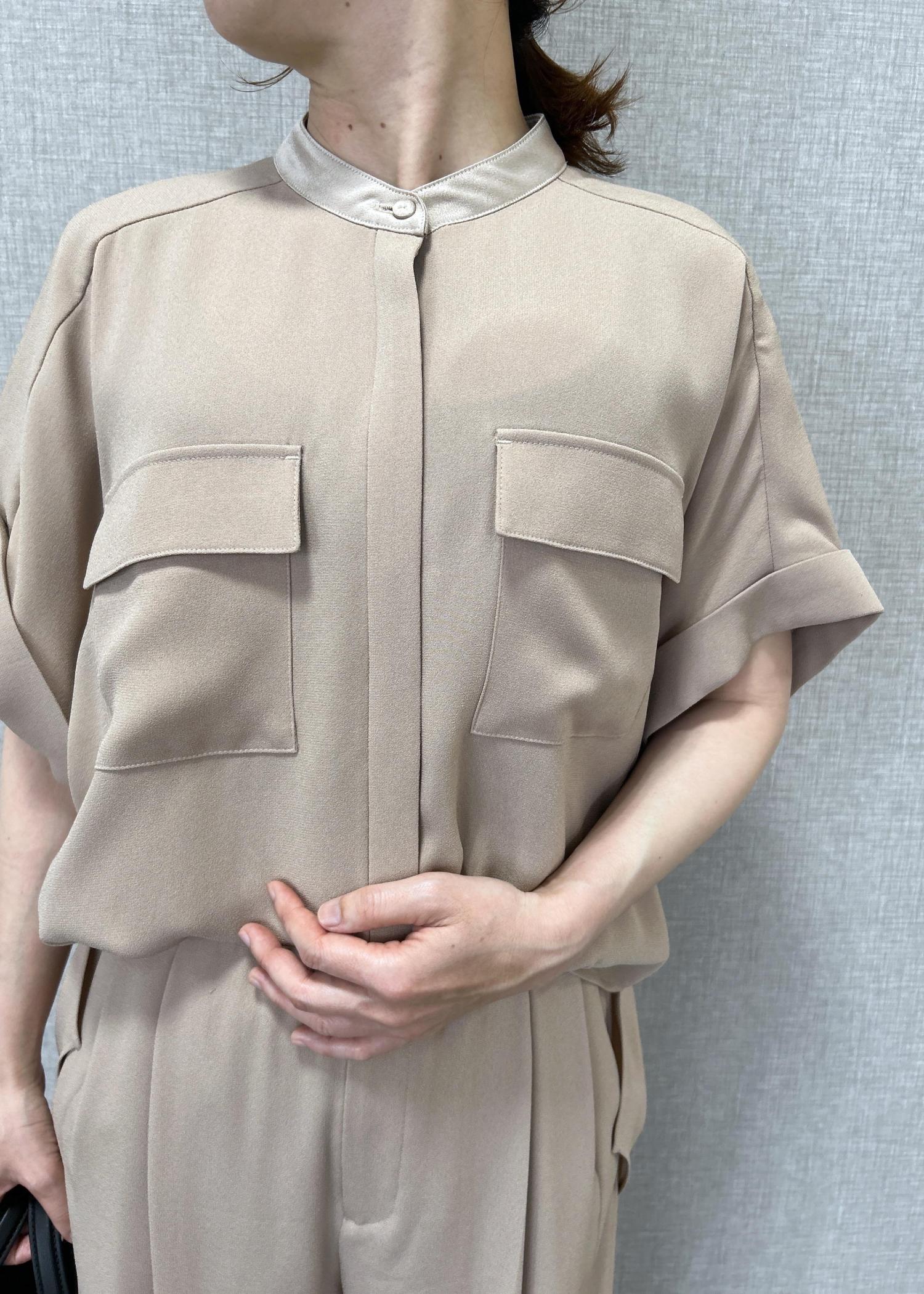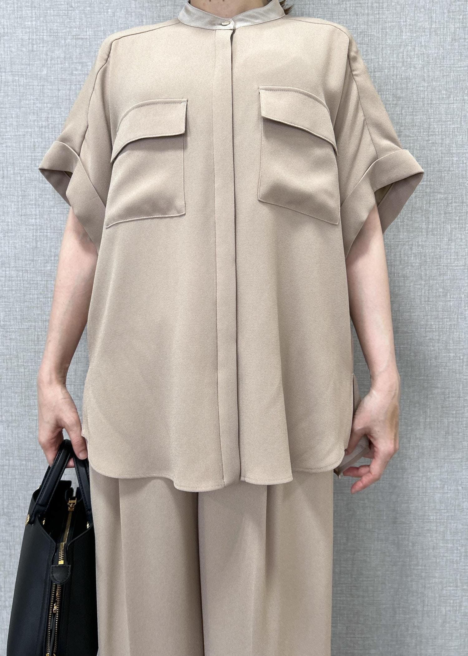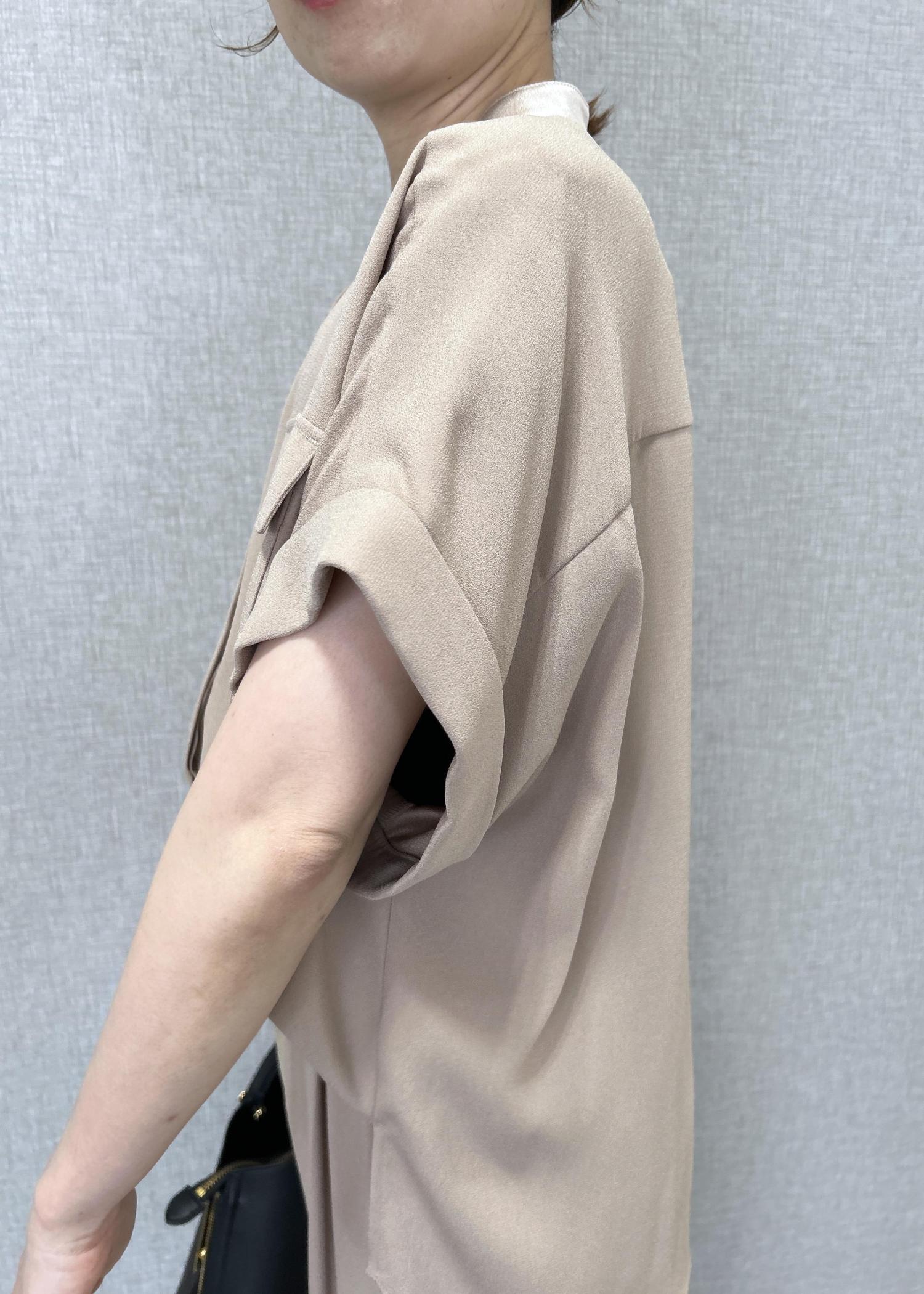 ROPÉライトトリアセバックサテンフラップブラウス/イージーケア・セットアップ対応ベージュ / F¥25,300レビュー着丈が前後で3cm程表側が短いです。