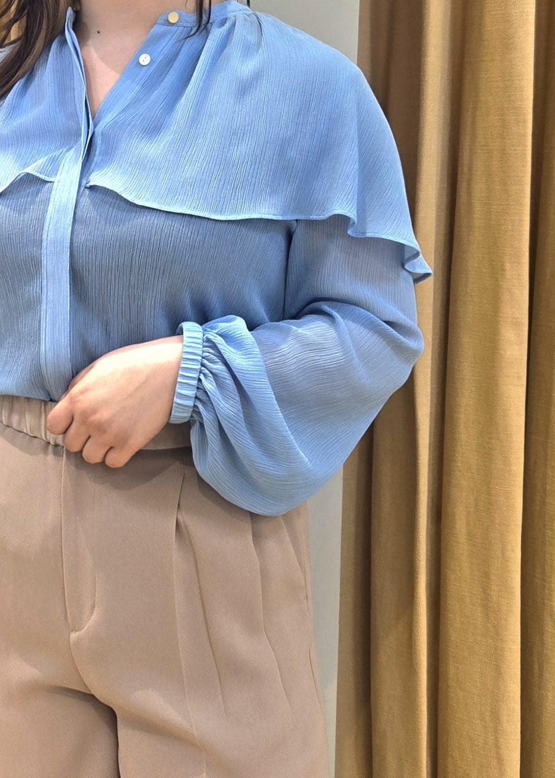 お袖もバルーンスリーブでフェミニンも兼ね備えたブラウスです。 -