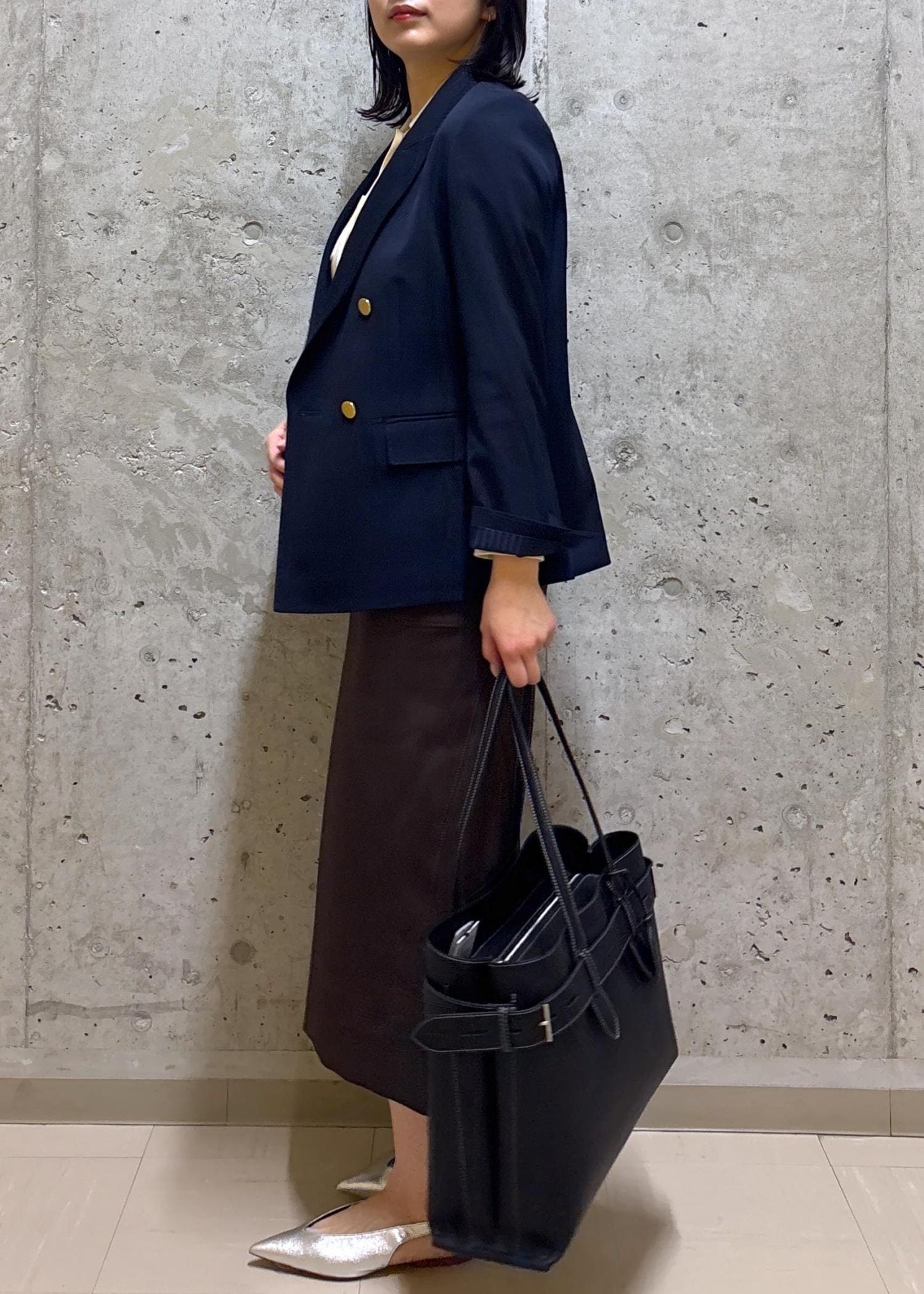 ダブル仕様ですが、身幅が大きすぎないのでシャープな印象にまとまります。