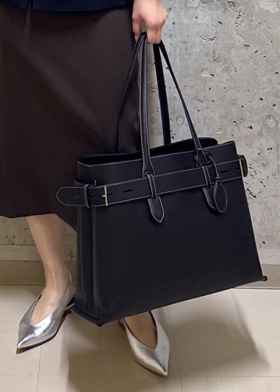 予約ROPÉ【E'POR】A BAG Large/A4対応・通勤ブラック / F¥20,900レビューマチが10㎝あり、A4資料、ノートPC(14インチ)なども入る大きさで、やや大きめなサイズ感です。