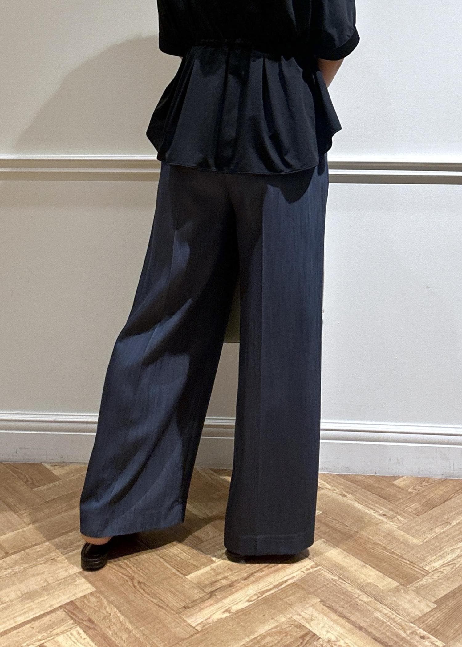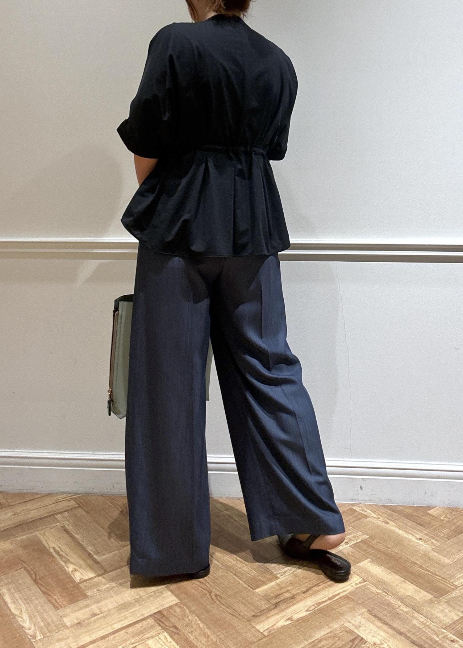 ネイビーのブラウスにパンツで合わせてみました♪
