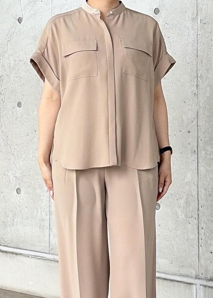 ROPÉライトトリアセバックサテンフラップブラウス/イージーケア・セットアップ対応ベージュ / F¥25,300レビュー162センチ 普段トップス38サイズ