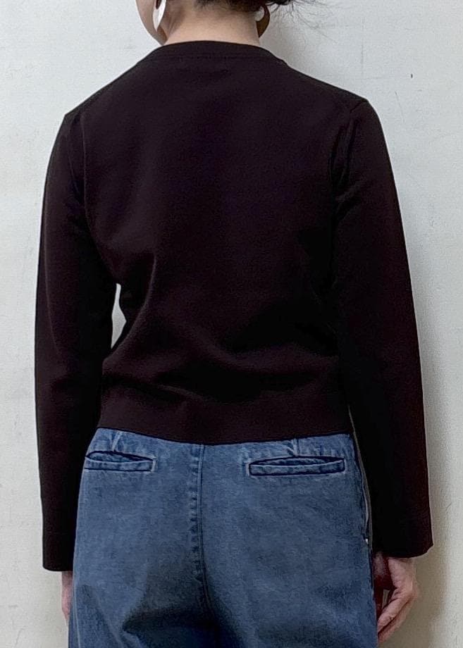 コンパクトな作りですが、春夏1枚着としてもカットソーやワンピースの羽織としてもスッキリ見えするシルエットのきれいなカーディガンです。