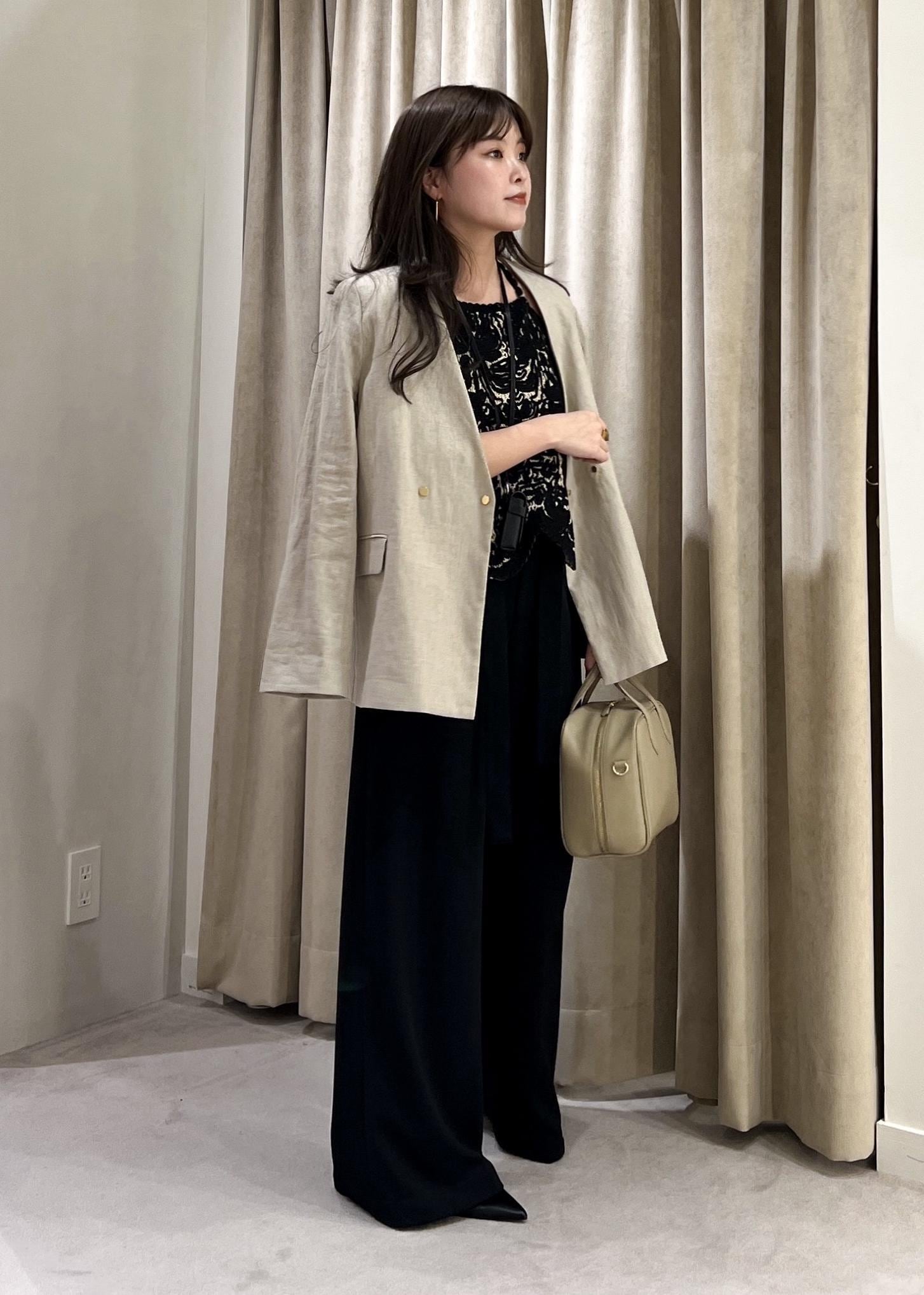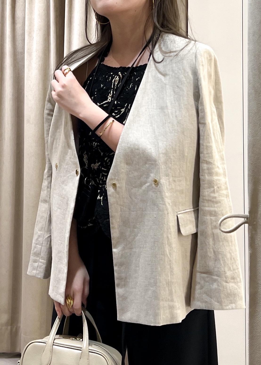 ノーカラーリネンジャケット
