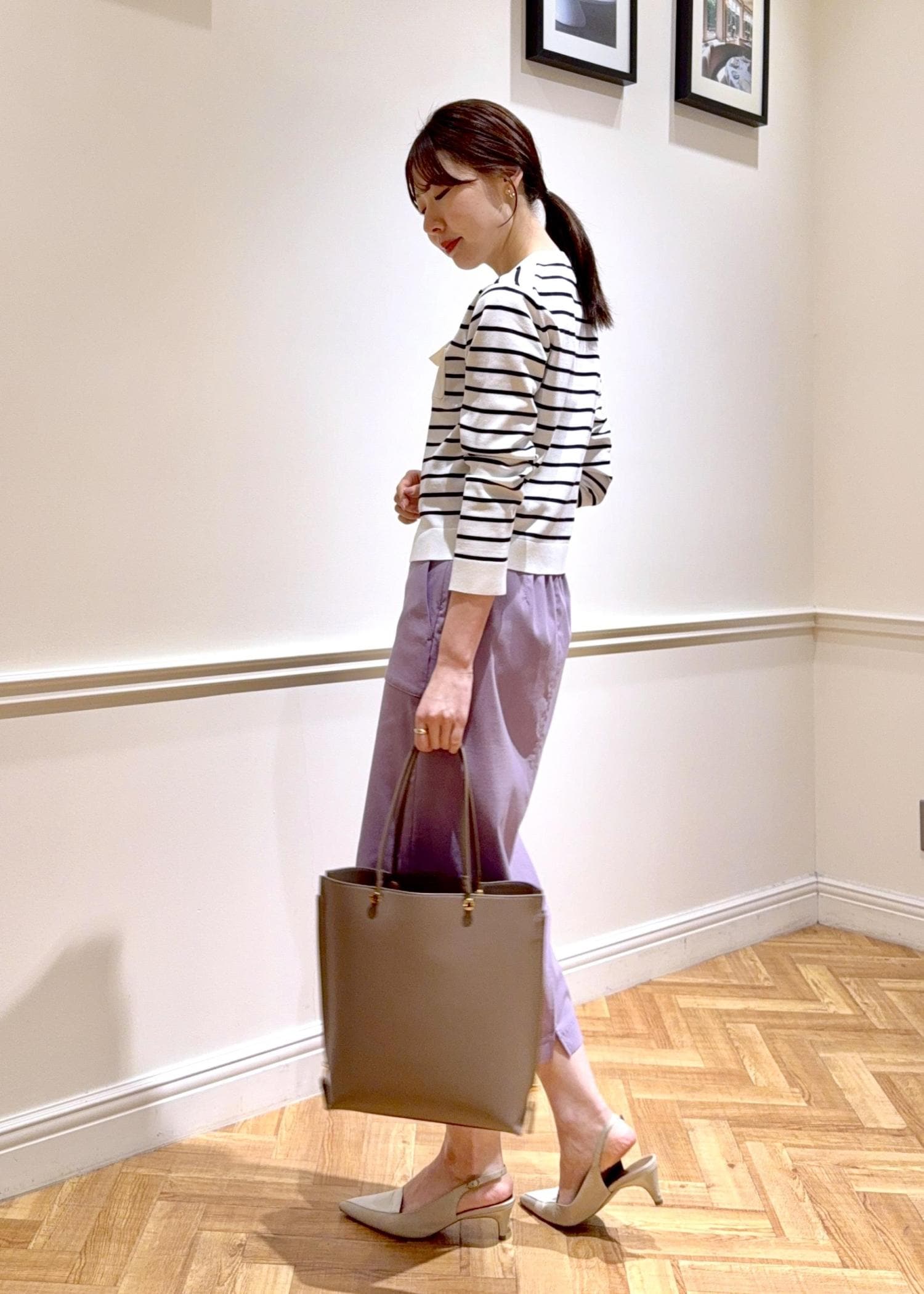 ボーダーとラベンダーカラーで爽やかで春らしい