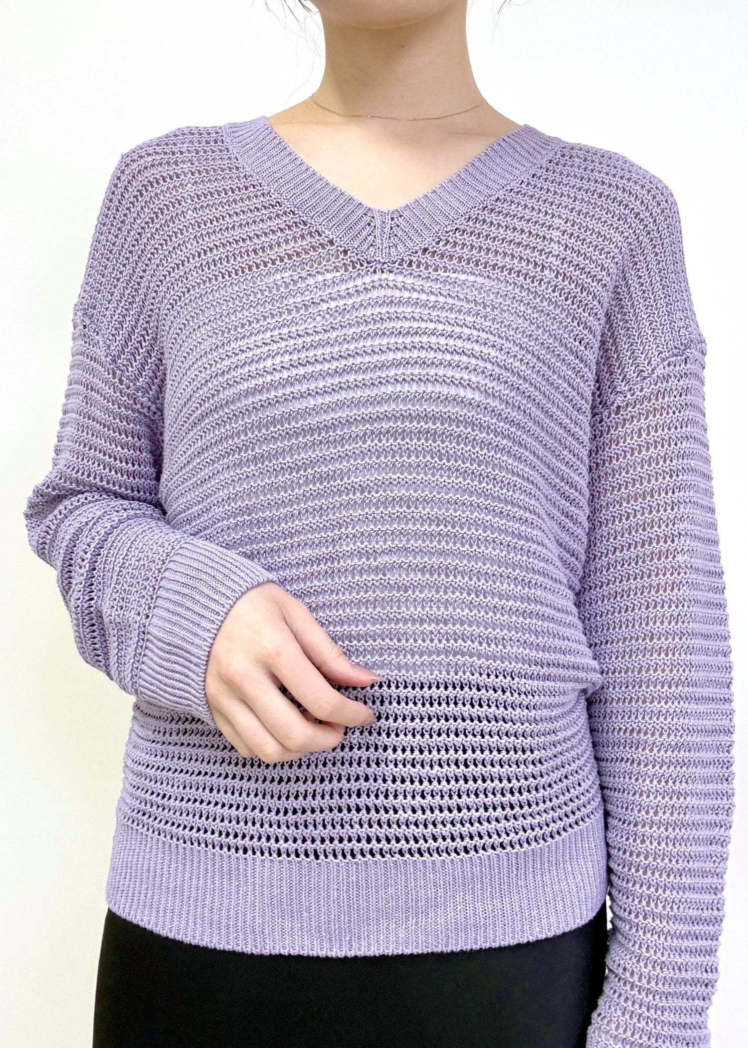 予約ROPÉリネン畦編みVネックニット/イージーケアラベンダー / F¥24,200レビューFサイズでゆったりと着られるサイズ感です。