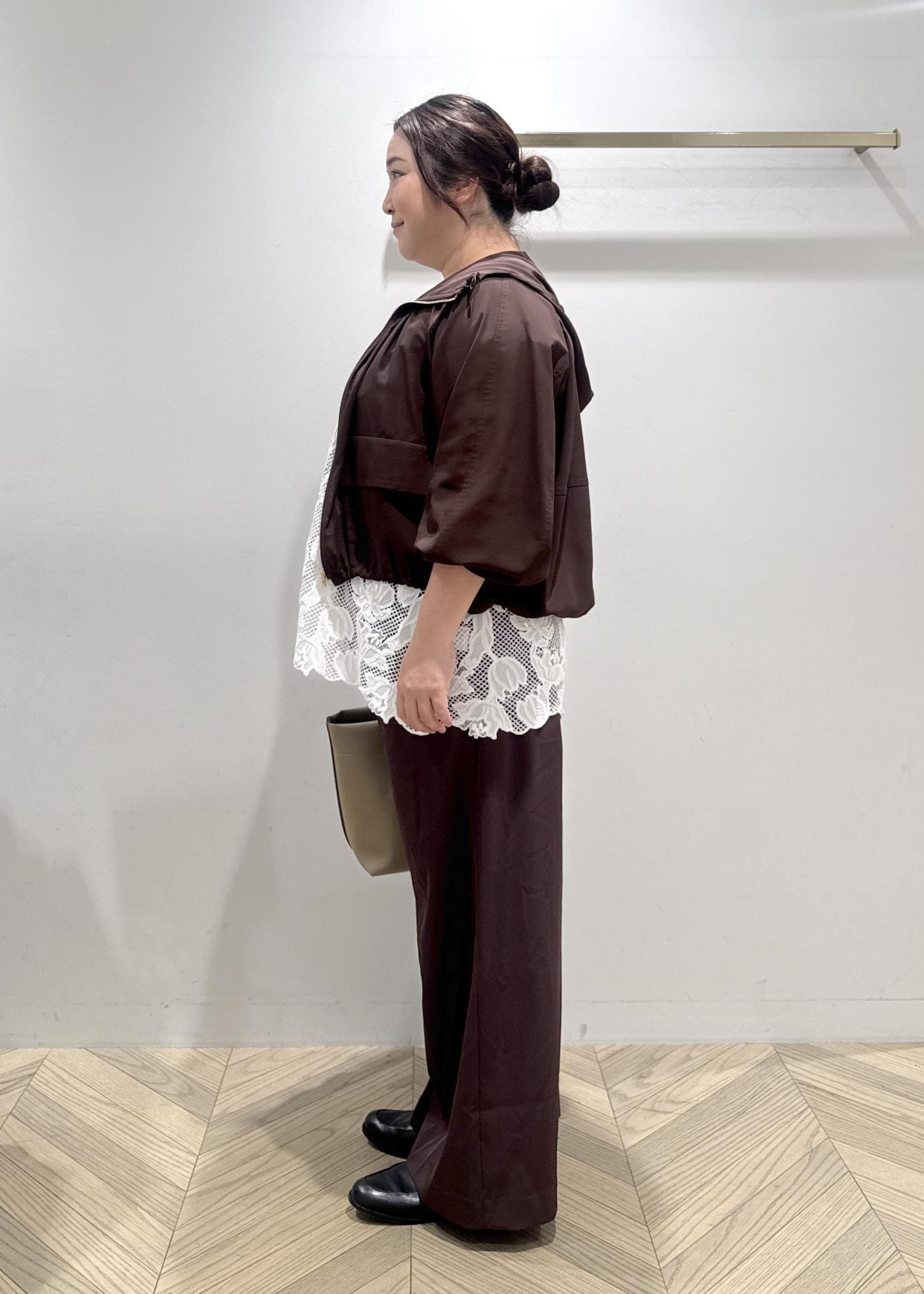 ROPÉイージータックワイドパンツ/セットアップ対応・イージーケアダークブラウン / 40¥25,300レビュー40サイズ着用(普段着用サイズは38か40サイズ)