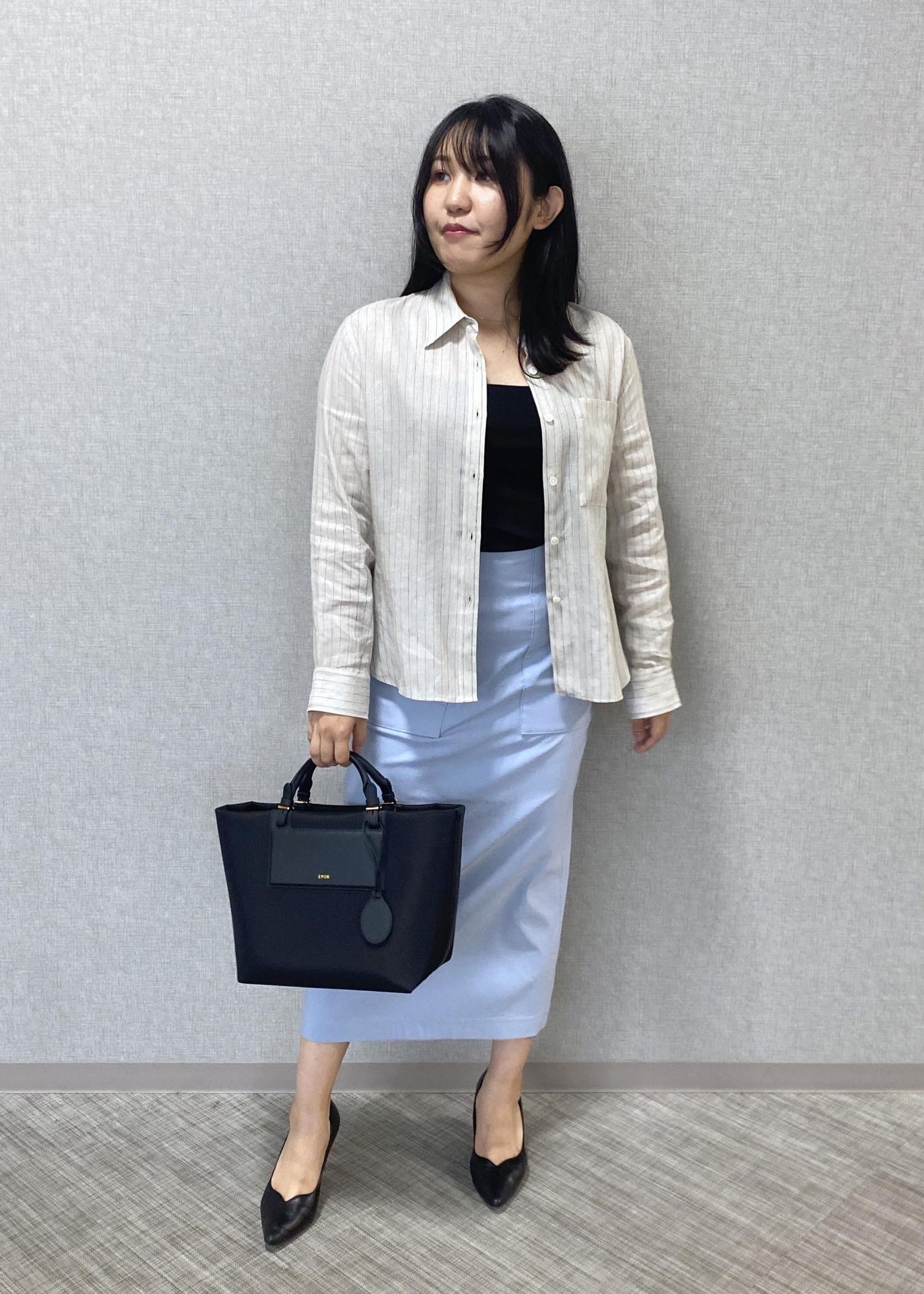 オンにもオフにも対応できる、軽やかなきれいめスタイルです。